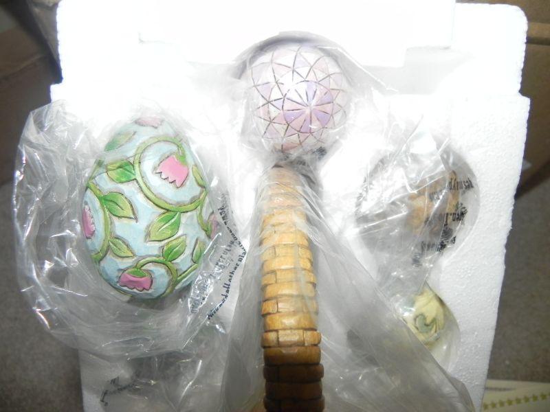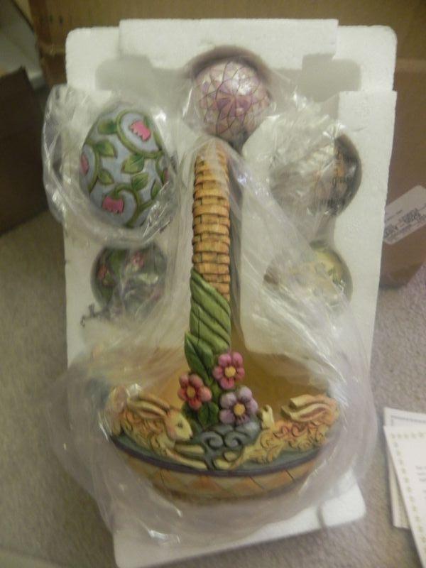 LOT 84 GLAZED POTTERY EGGS & BASKET (NEW)