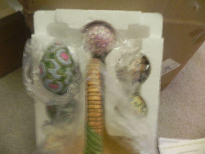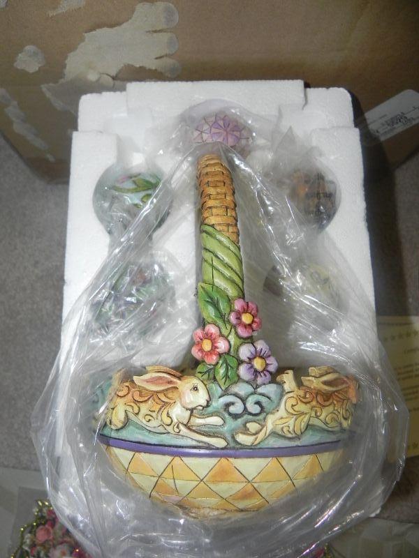 RABBITS AND FLOWERS DECORATE THIS BASKET WITH 5 DECORATED EGGS