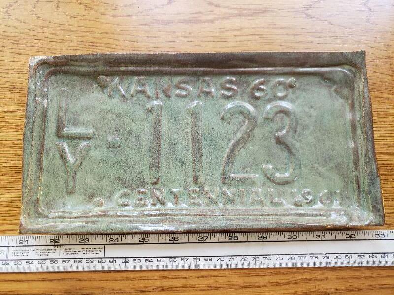 Lot 84: Ceramic Kansas License Plate Art- Signed