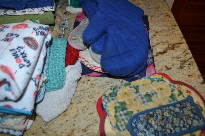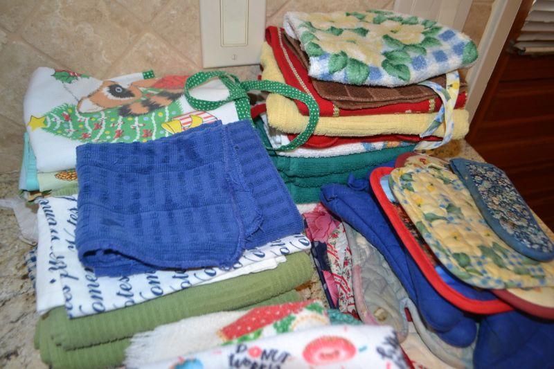 LOT 84 KITCHEN TOWELS AND OVEN MITS