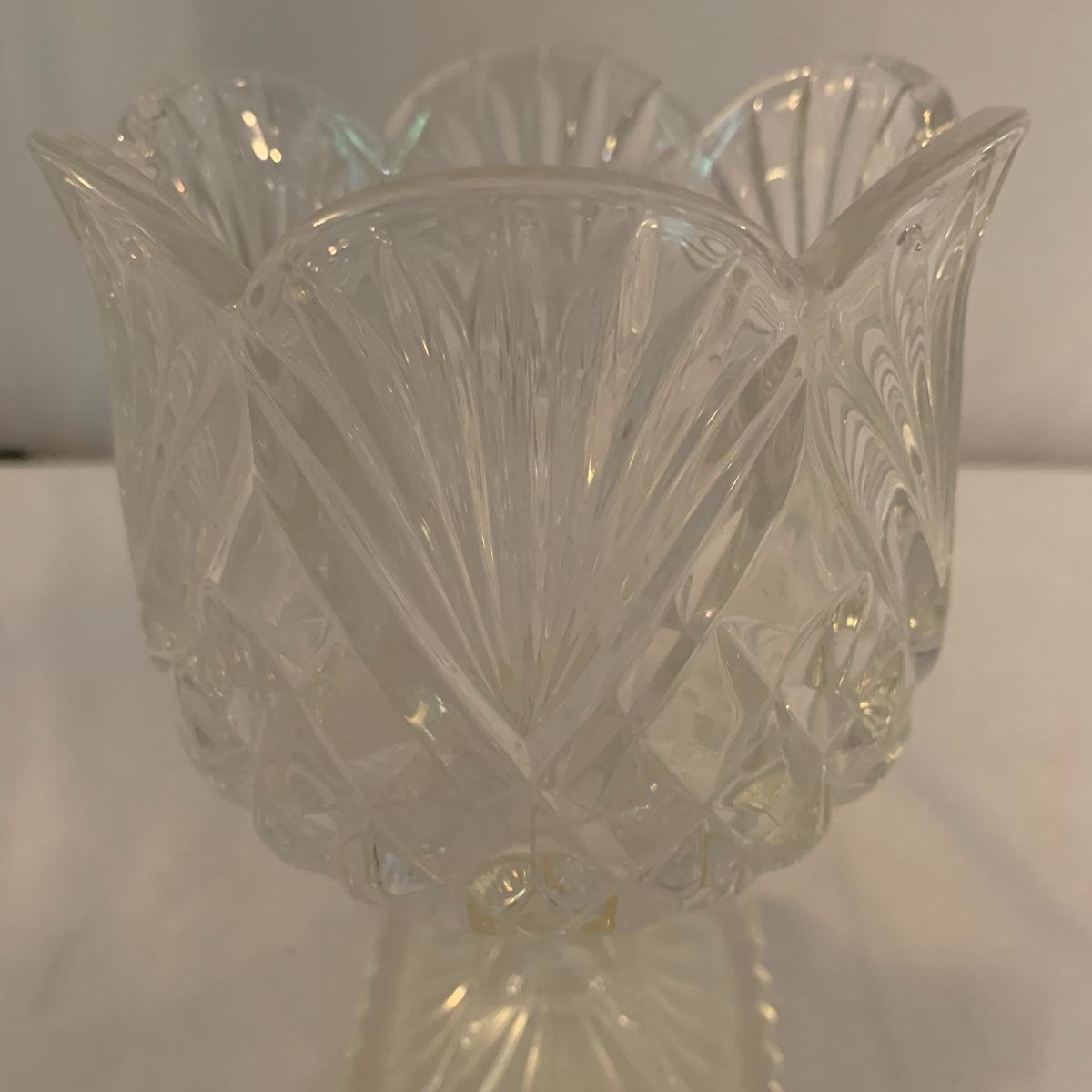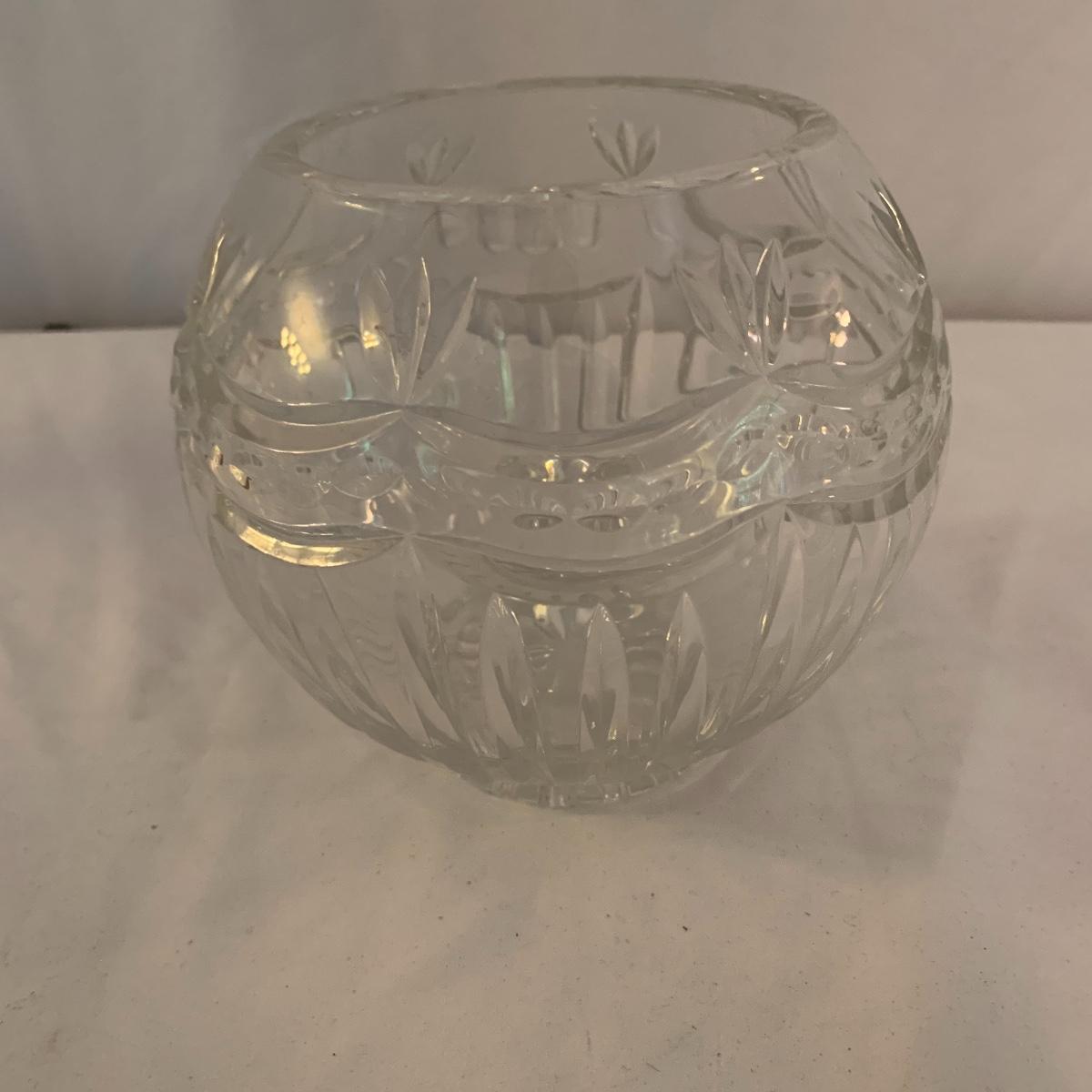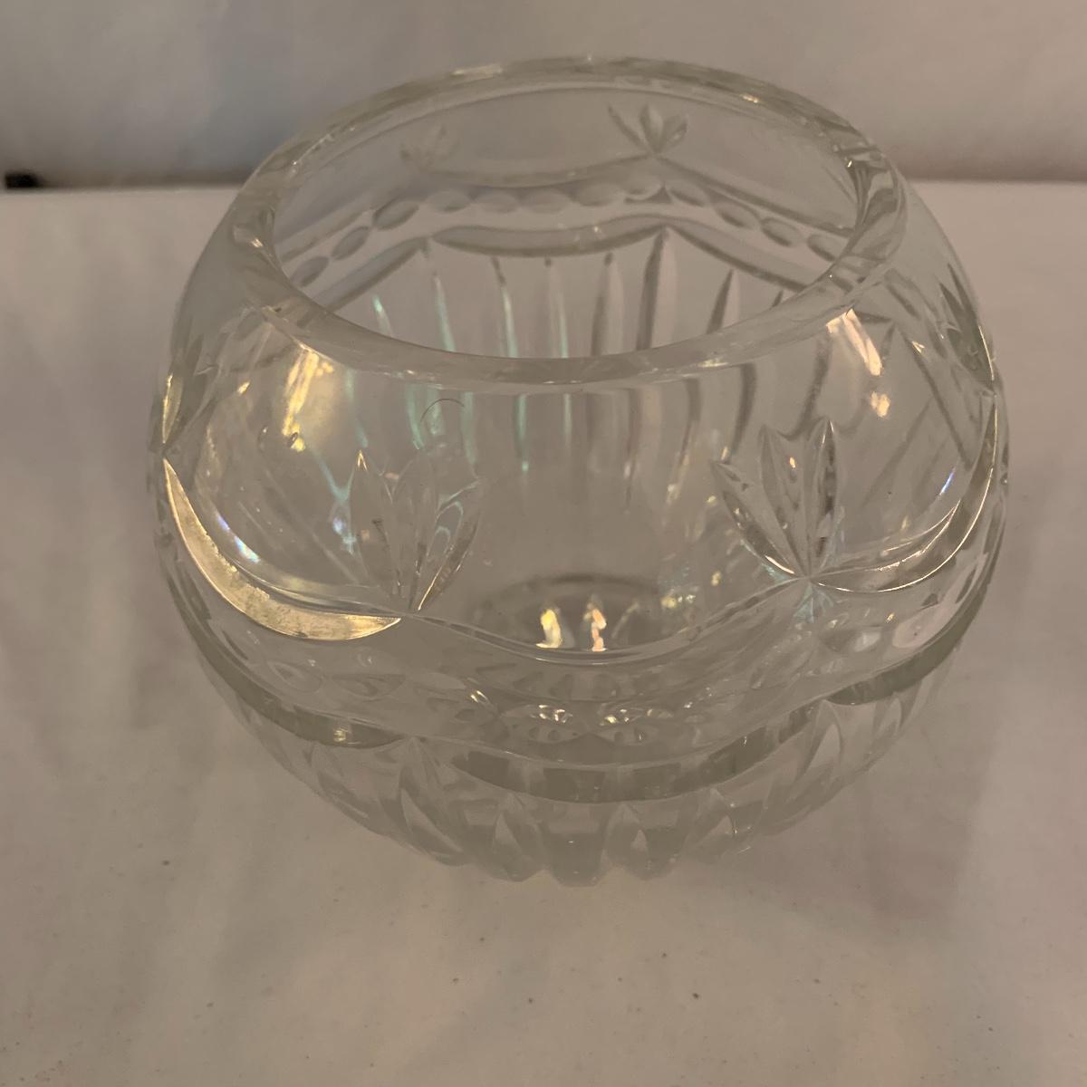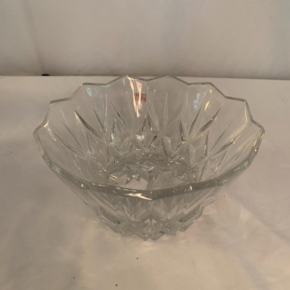 This group of crystal is simply exquisite and nice and heavy! The lot includes a gorgeous pedestal bowl that measures 10” in diameter X 7” tall. Also featured are two bowls, a small round vase, a chalice made by Shannon of Ireland, and a crystal basket with a cute little handle. This crystal is all in good condition, free of chips and cracks.