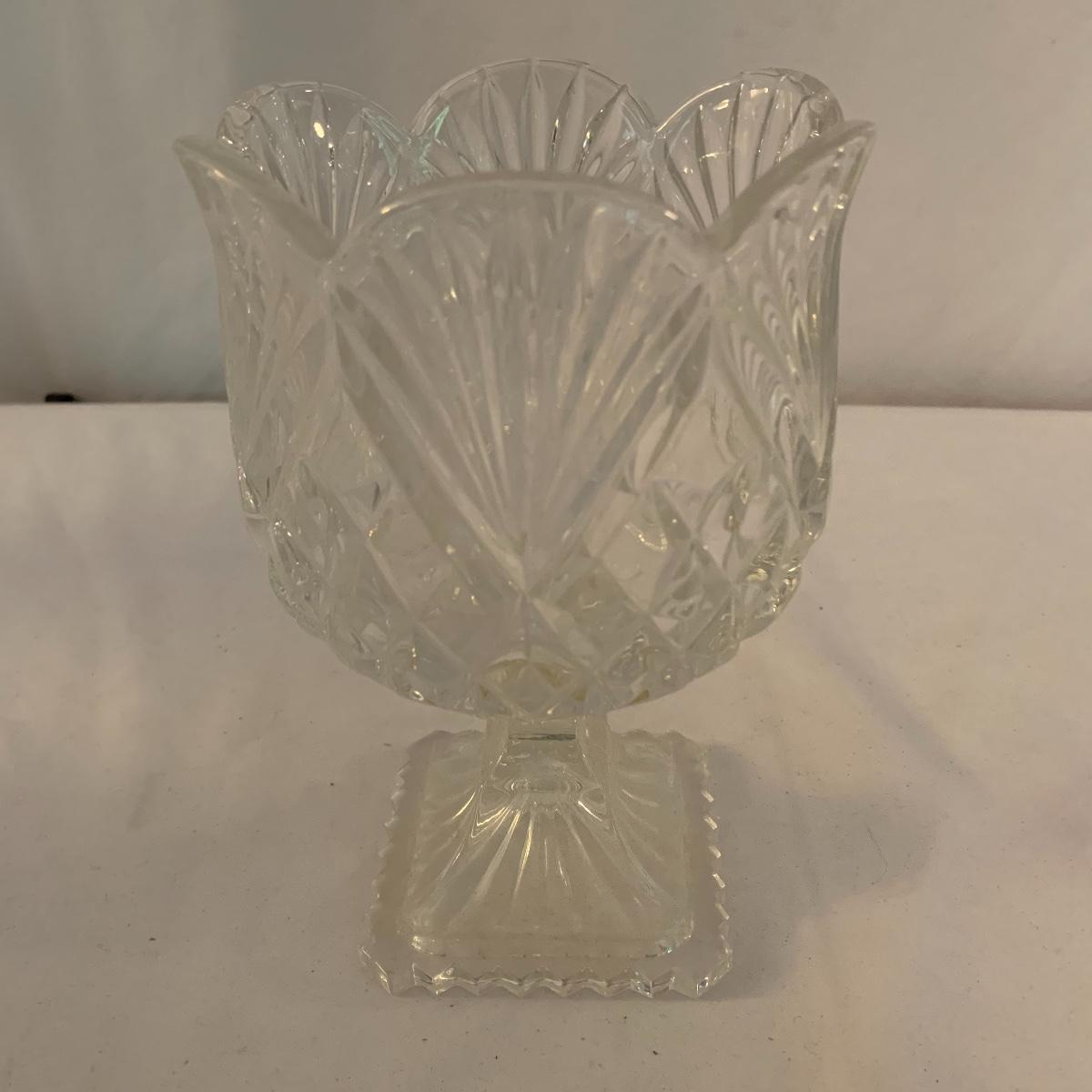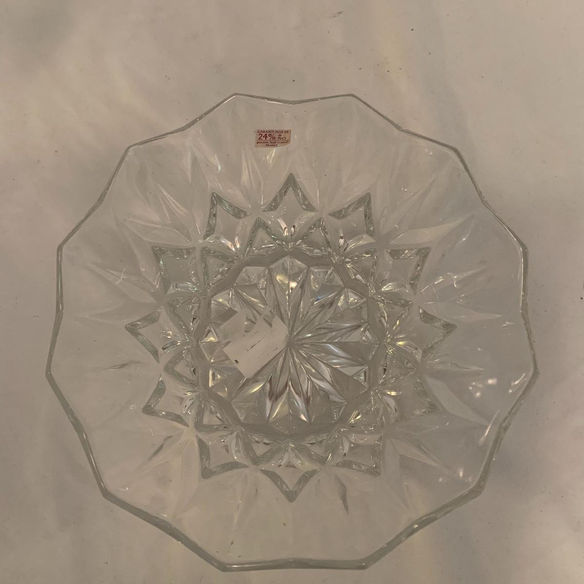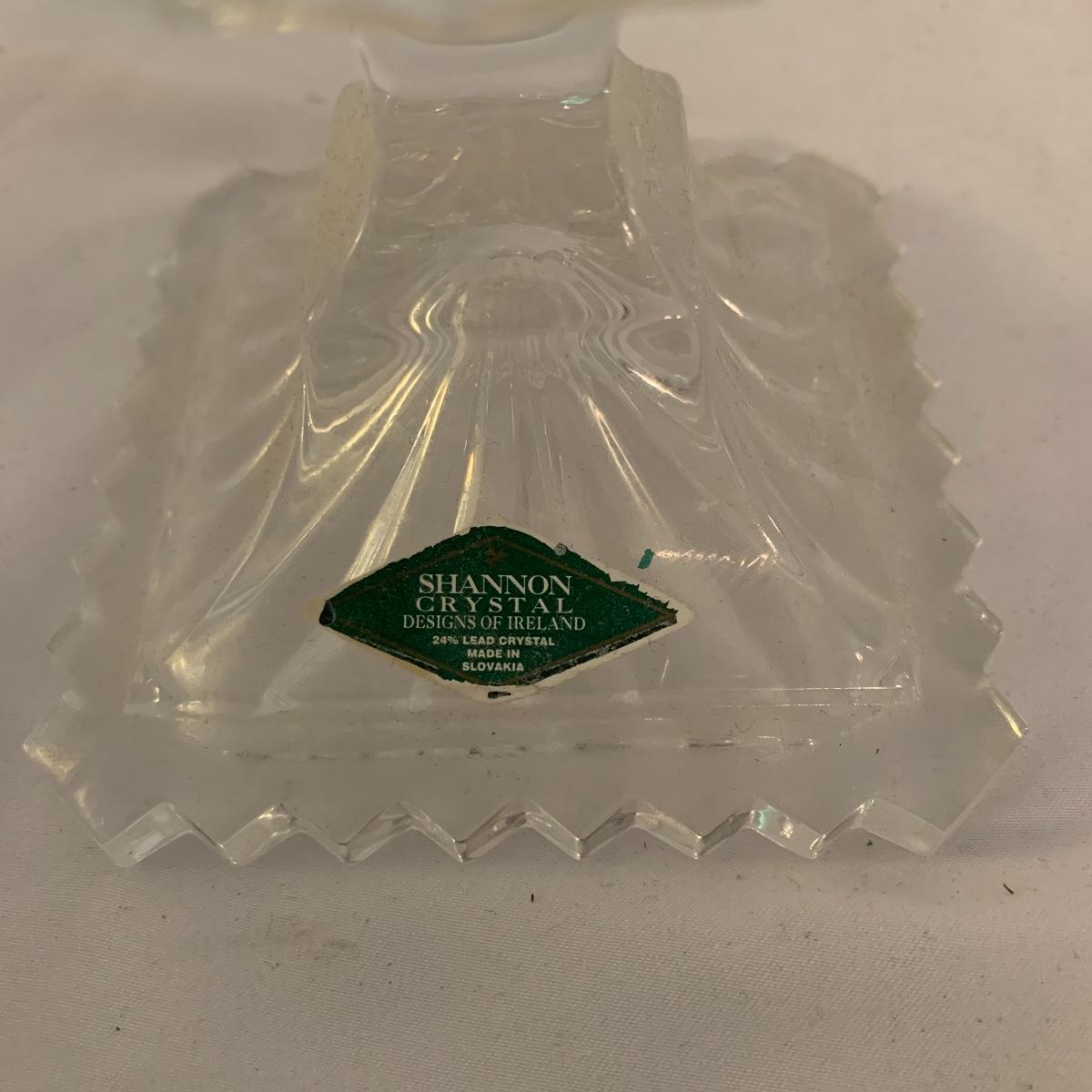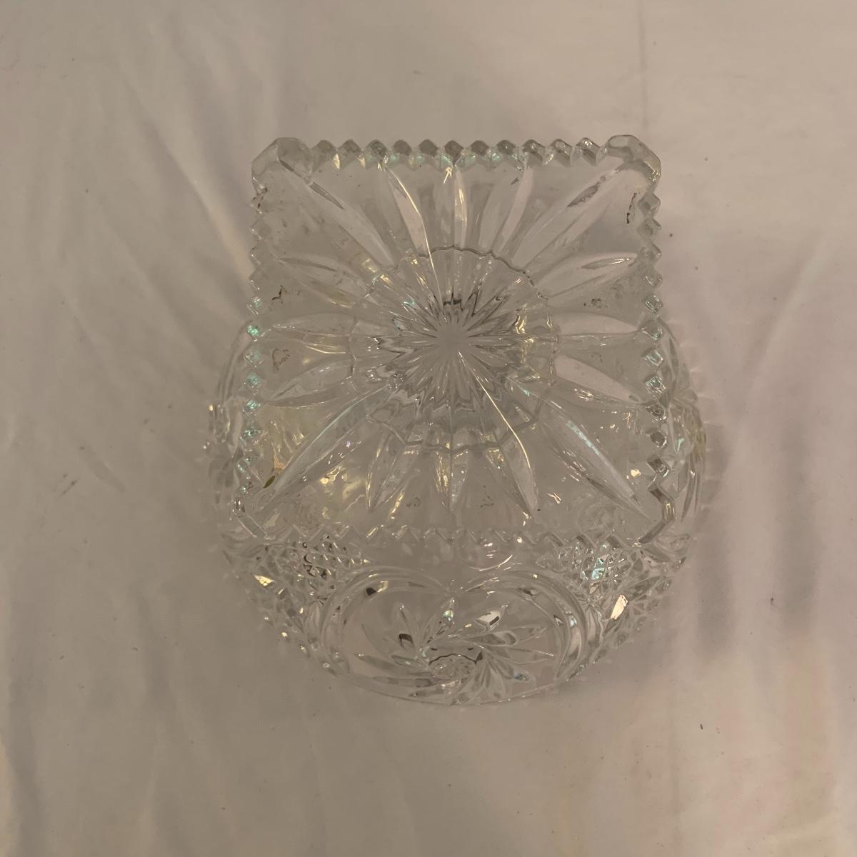 This group of crystal is simply exquisite and nice and heavy! The lot includes a gorgeous pedestal bowl that measures 10” in diameter X 7” tall. Also featured are two bowls, a small round vase, a chalice made by Shannon of Ireland, and a crystal basket with a cute little handle. This crystal is all in good condition, free of chips and cracks.