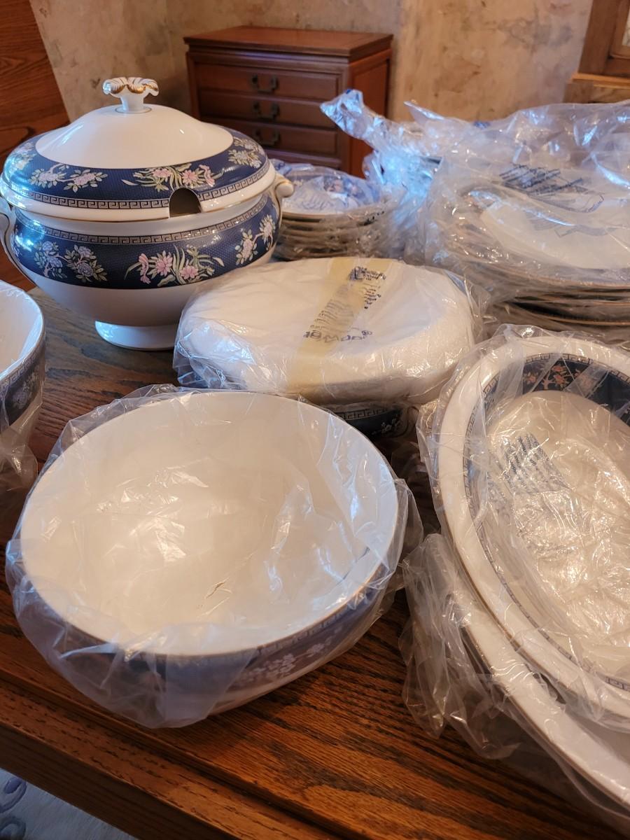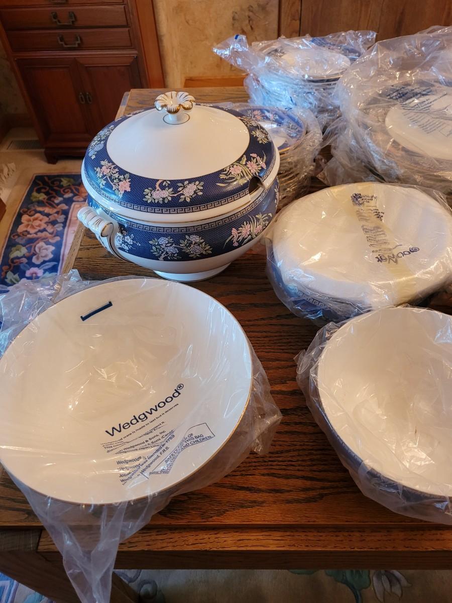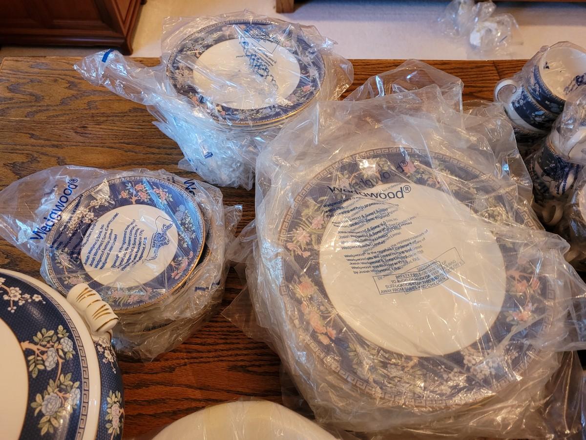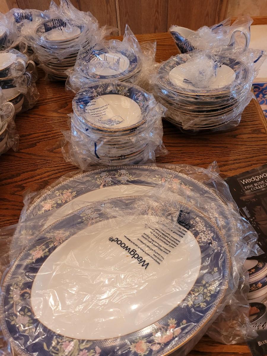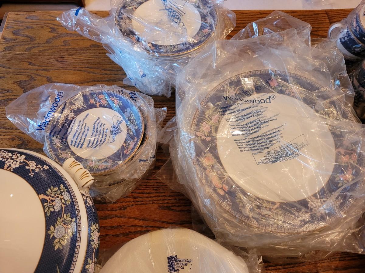 Lot 84: Wedgwood Blue Siam Large China Set (mostly new in packages)