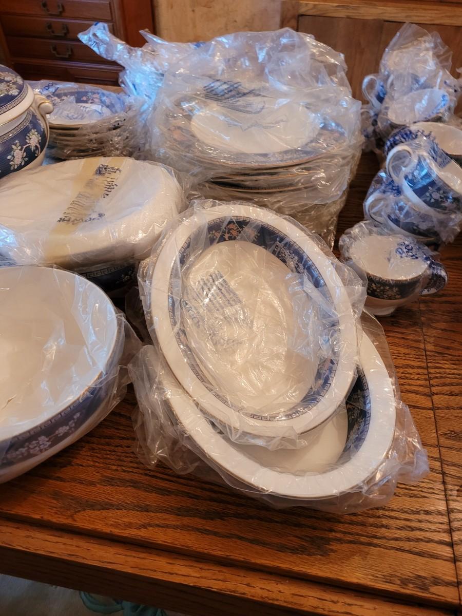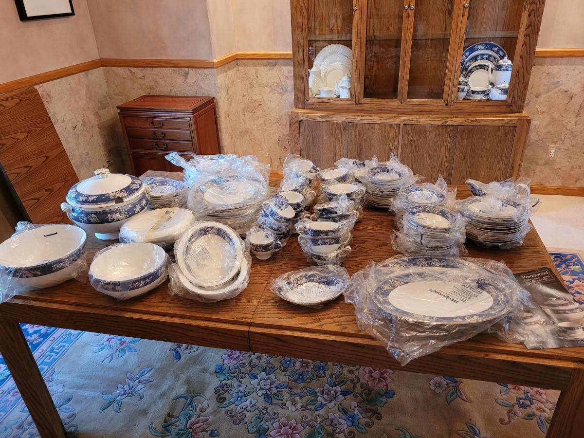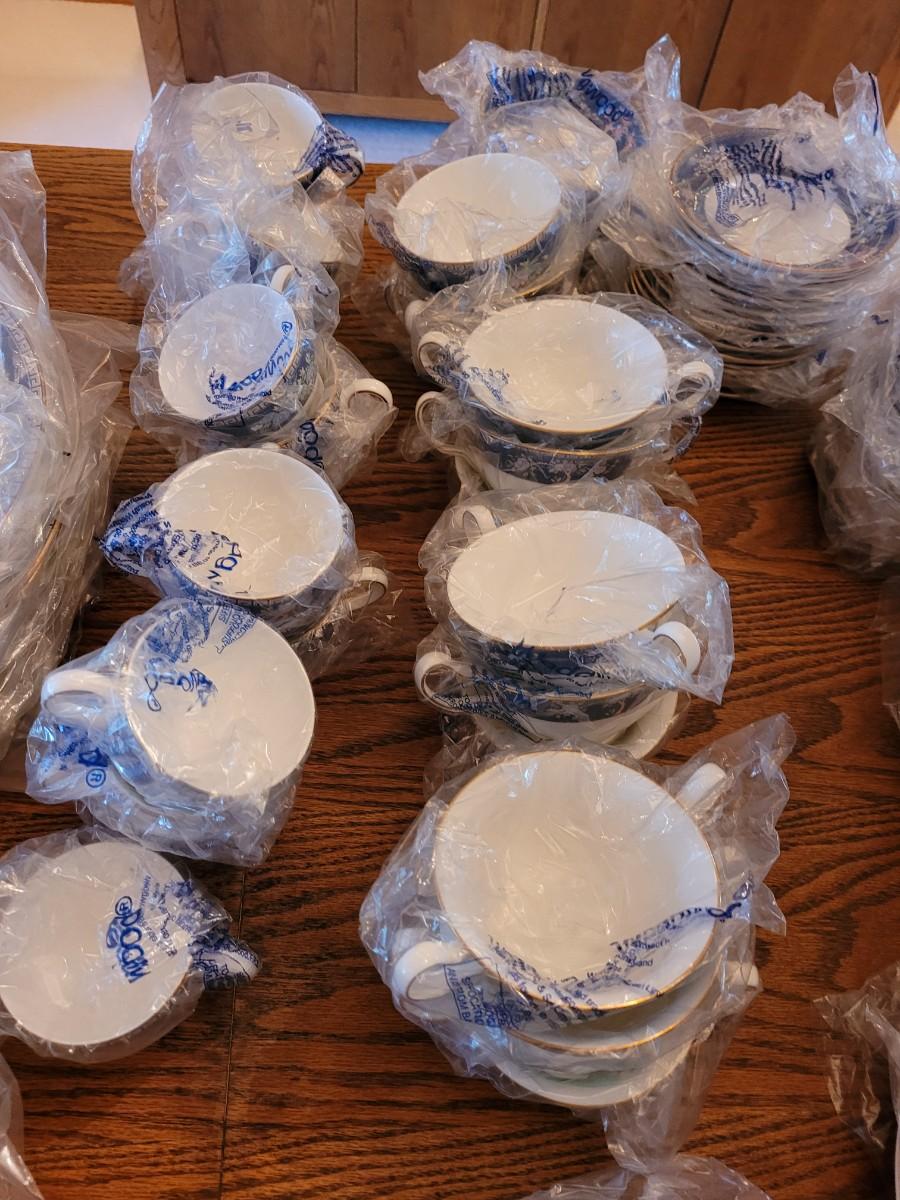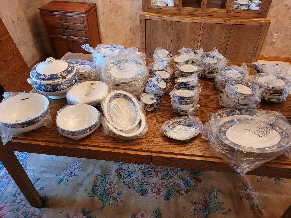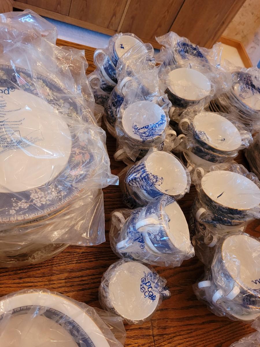 Lot 84: Wedgwood Blue Siam Large China Set (mostly new in packages)