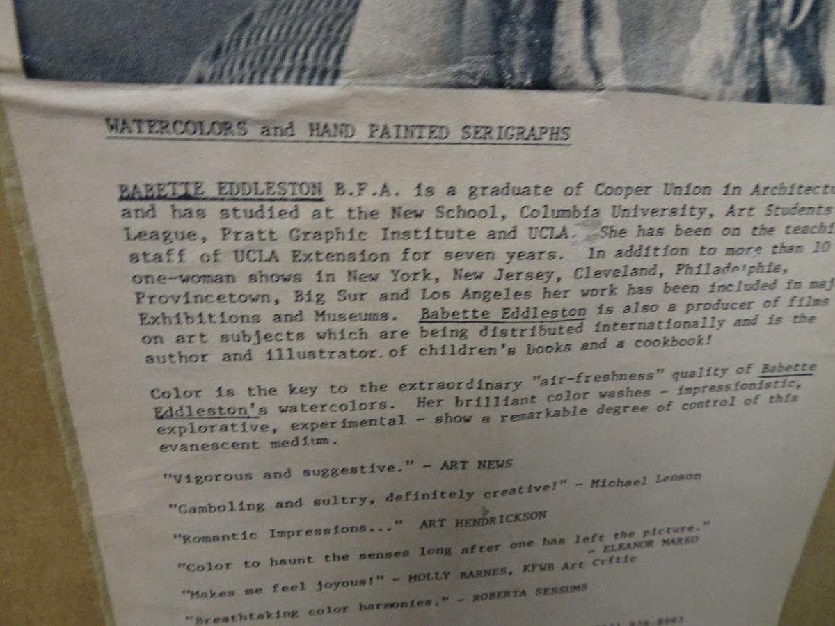 PENCIL SIGNED AND NUMBERED SERIGRAPH BY BABETTE EDDLESTON