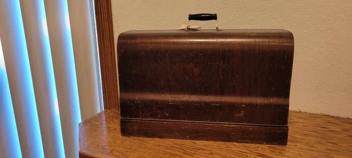 Lot 84: Vintage FRANKLIN Rotary Sewing Machine with Locking Wood Case