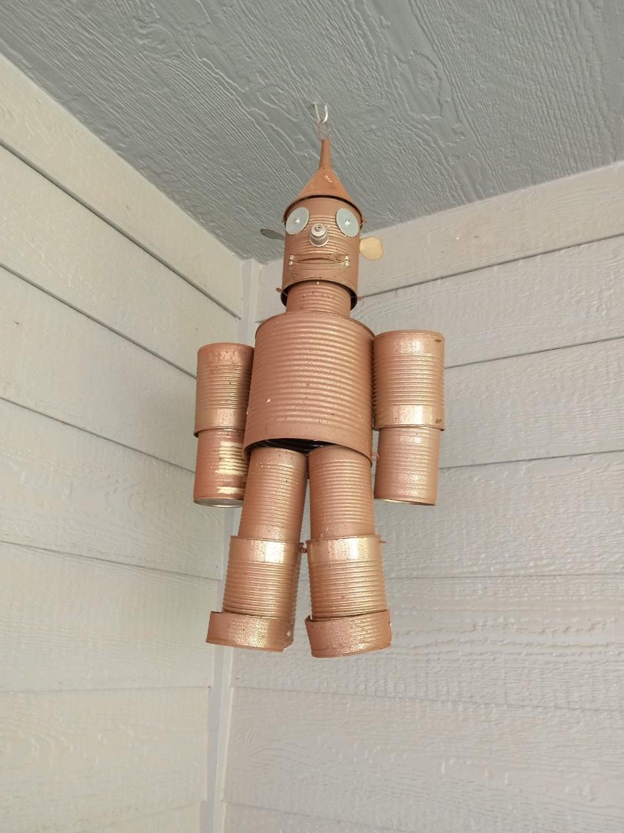 THE TIN MAN IS APPROX 28" TALL AND MADE OUT OF CANS