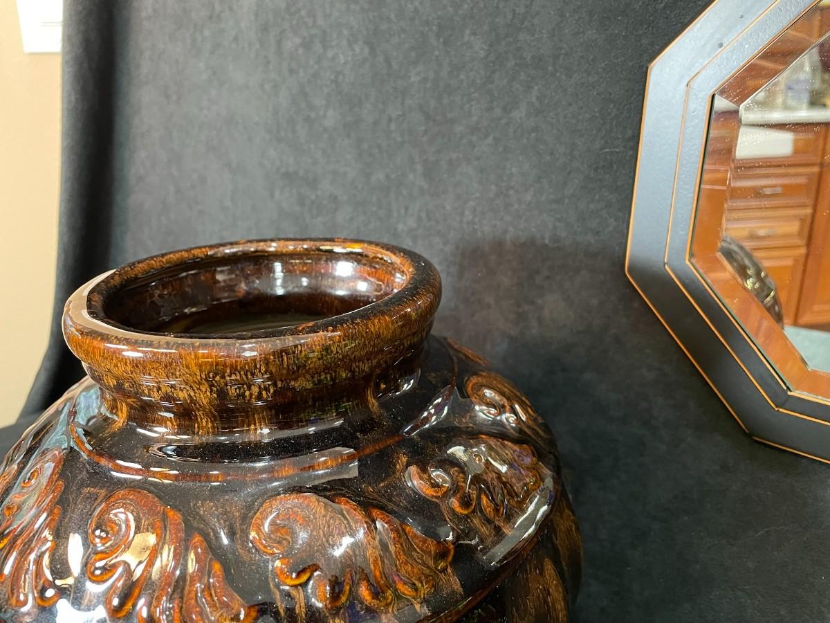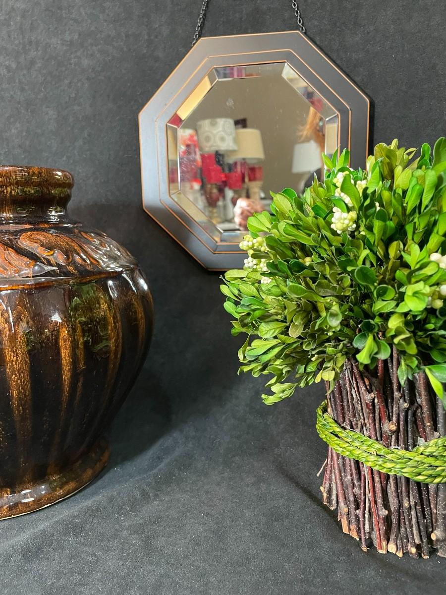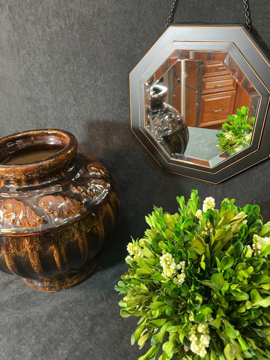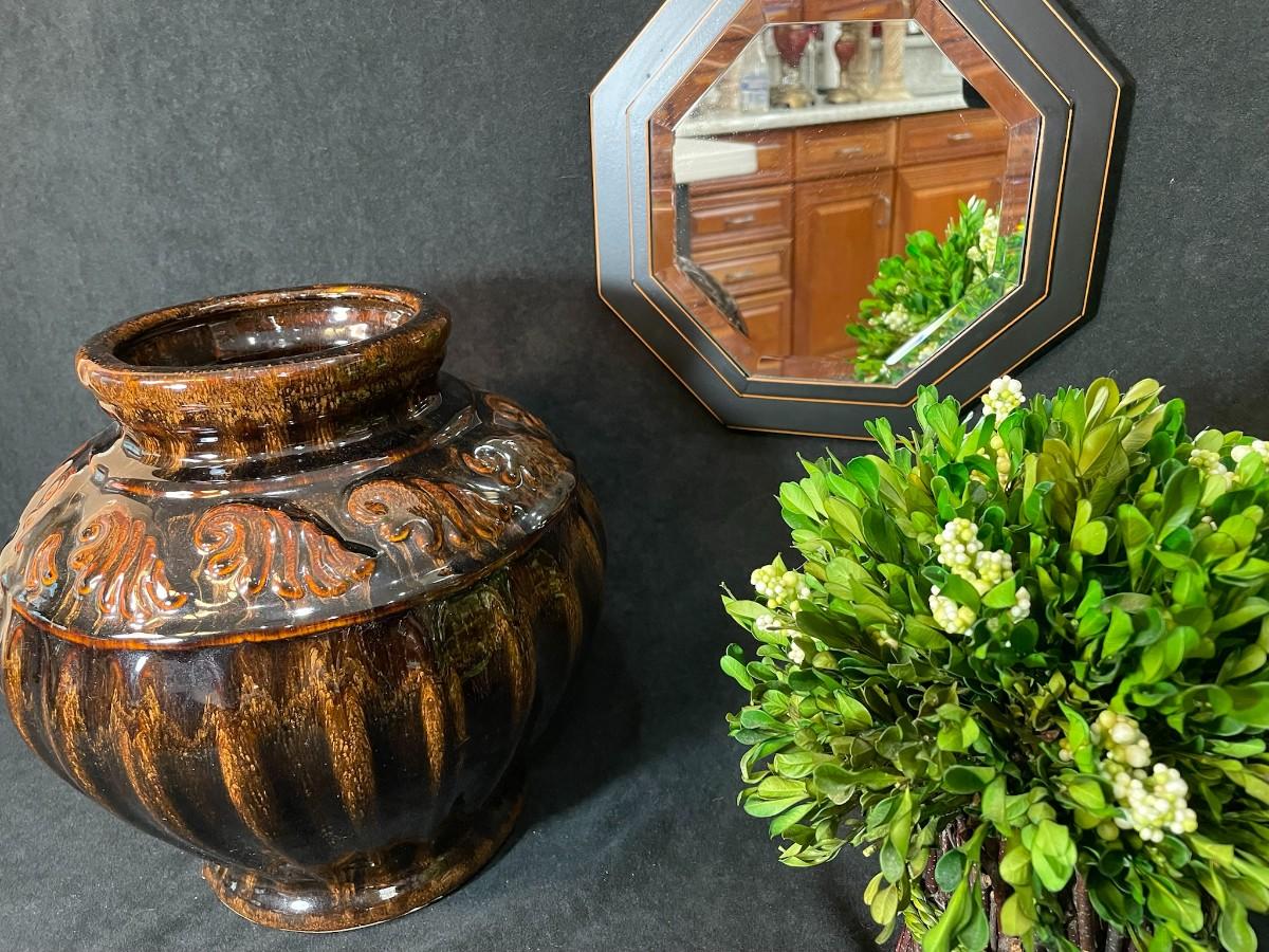 Lot 84 Brown Glazed Pot, Small Mirror & Silk