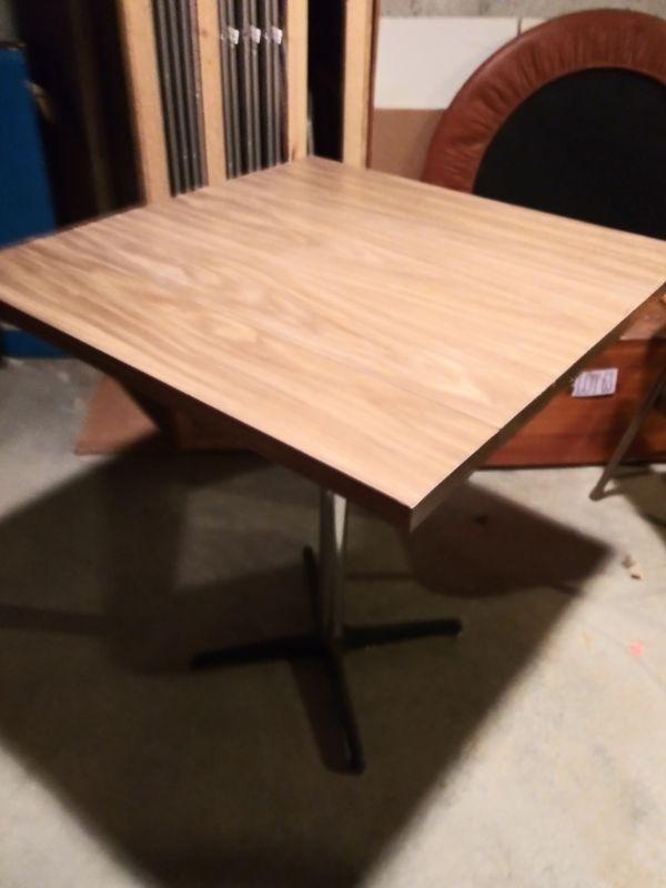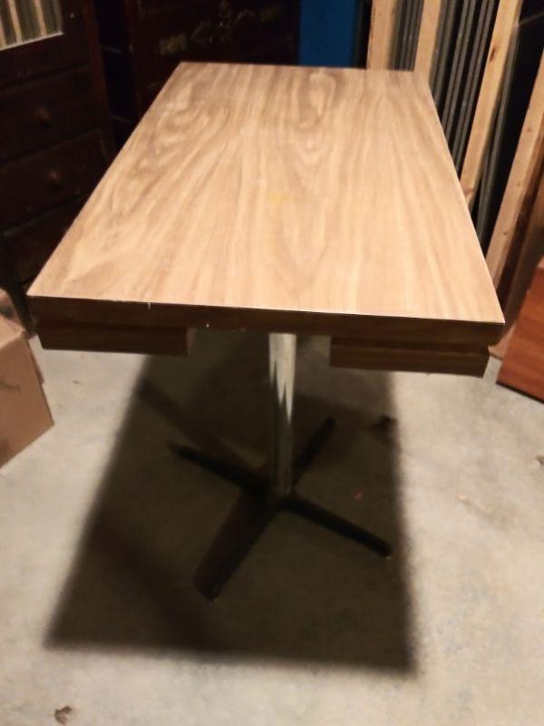 METAL BASE, FORMICA TOP CAFE STYLE TABLE