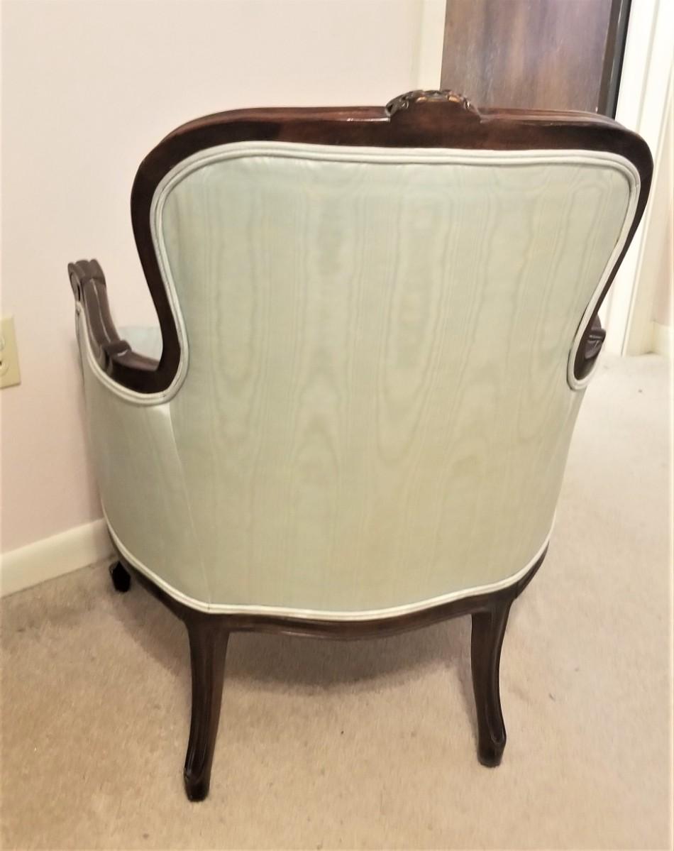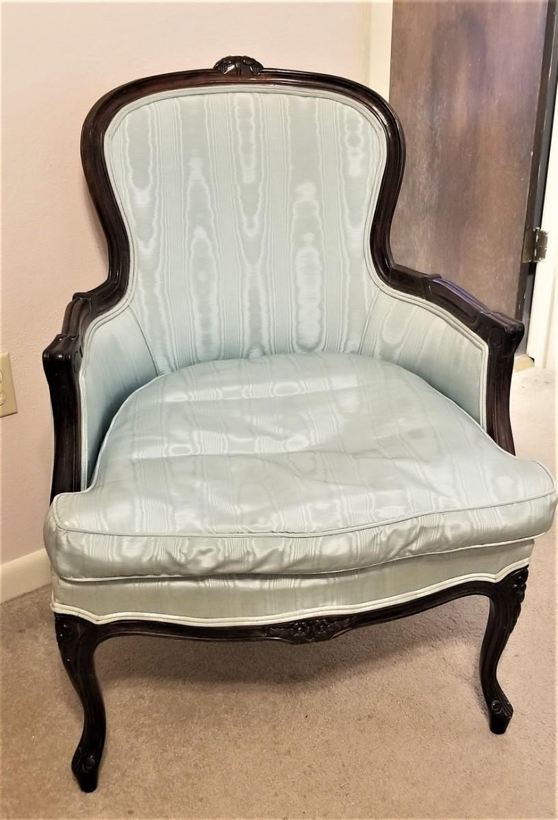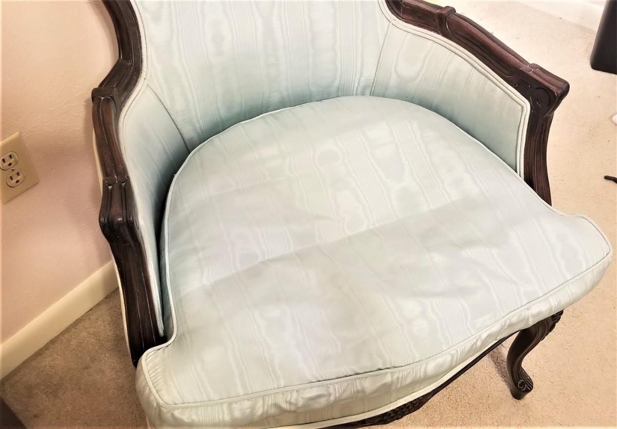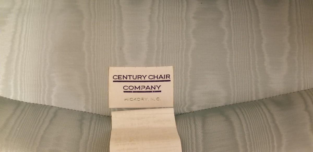 A vintage beauty - watered taffeta upholstery, duck down seat cushion - by the Century Chair Co. (quality maker). Clean and comfy measures about 36" tall and 27" across.