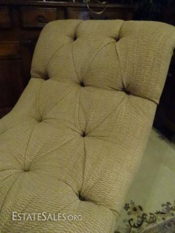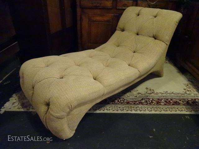 LOT 84: CONTEMPORARY CHAISE, TUFTED BEIGE UPHOLSTERY