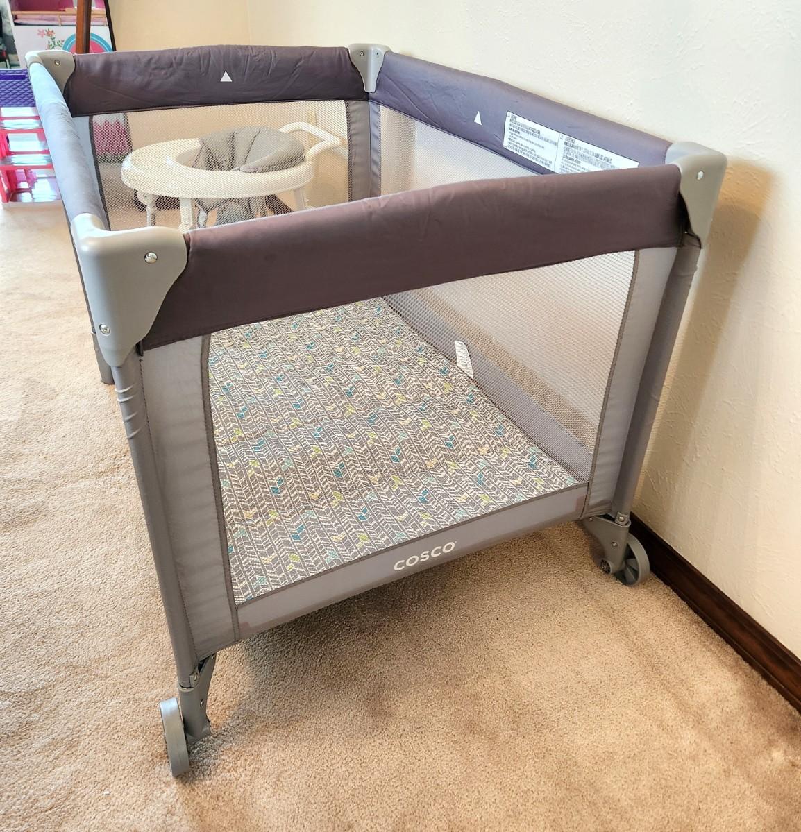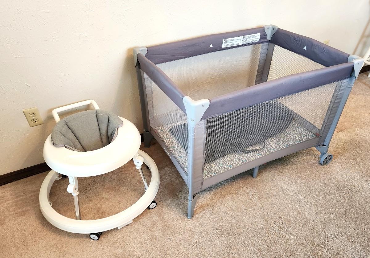 Lot #84 Coscco Fold Up Infant Bed/playpen and Baby walker - like new