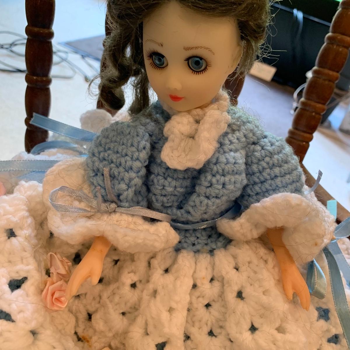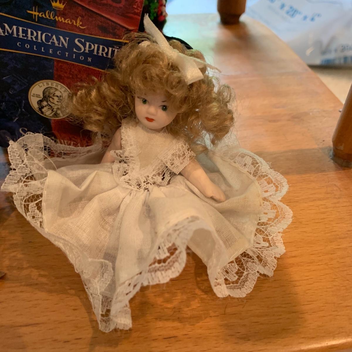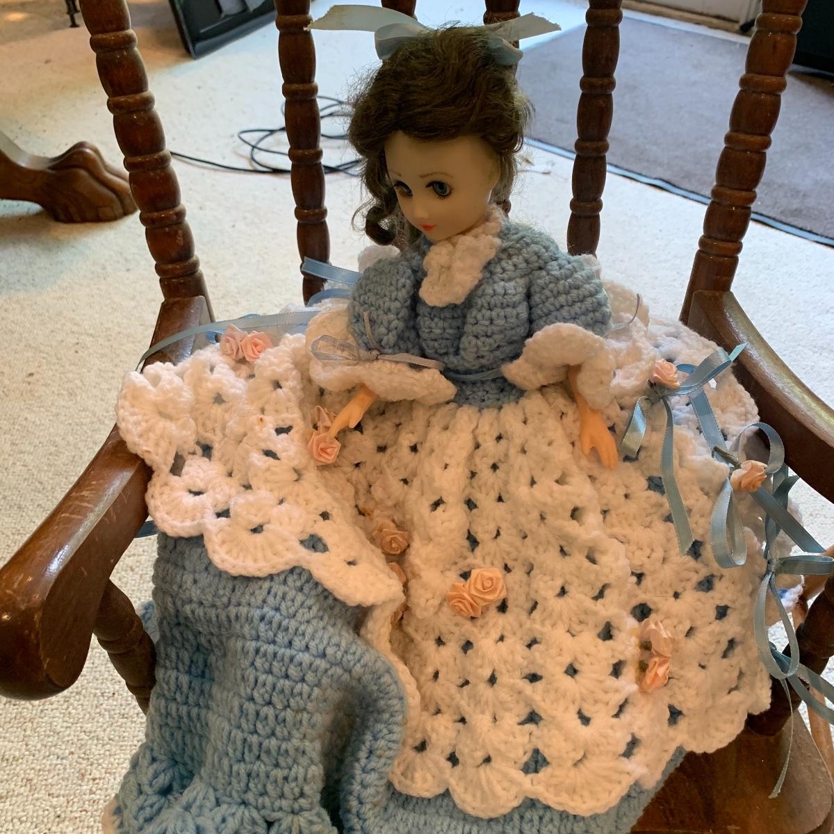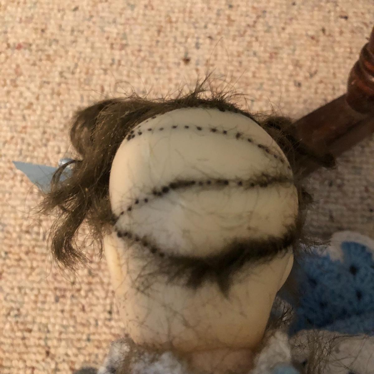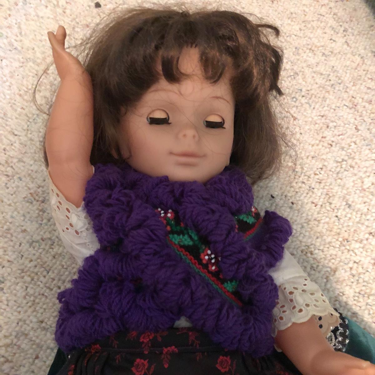 This is adorable!! Lot 100 offers two cute children’s rocking chairs as well as four dolls. The largest of the three stands 33” tall and is well dressed in winter attire and has some hair falling out. This blue eyed doll has an L makers mark on the back of her neck, see pictures. The next is an American Spirit Sacajawea doll made by Hallmark. Last is a tiny doll that appears to be porcelain. No makers mark can be found. Local pickup only.