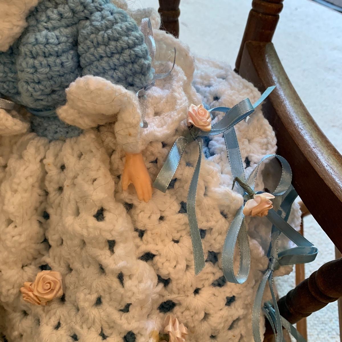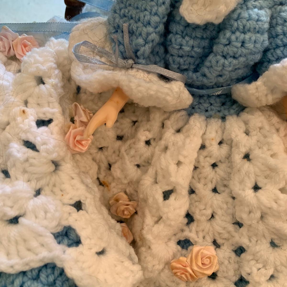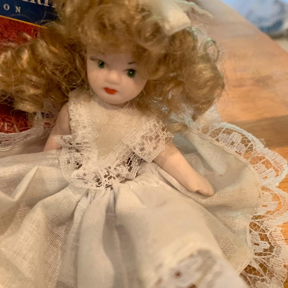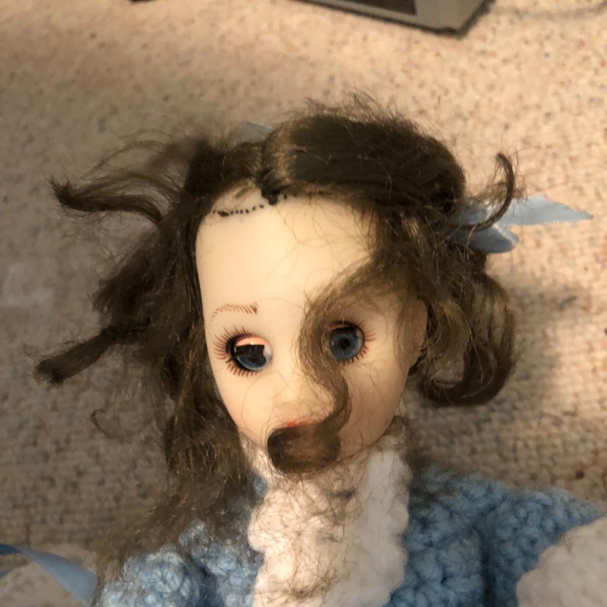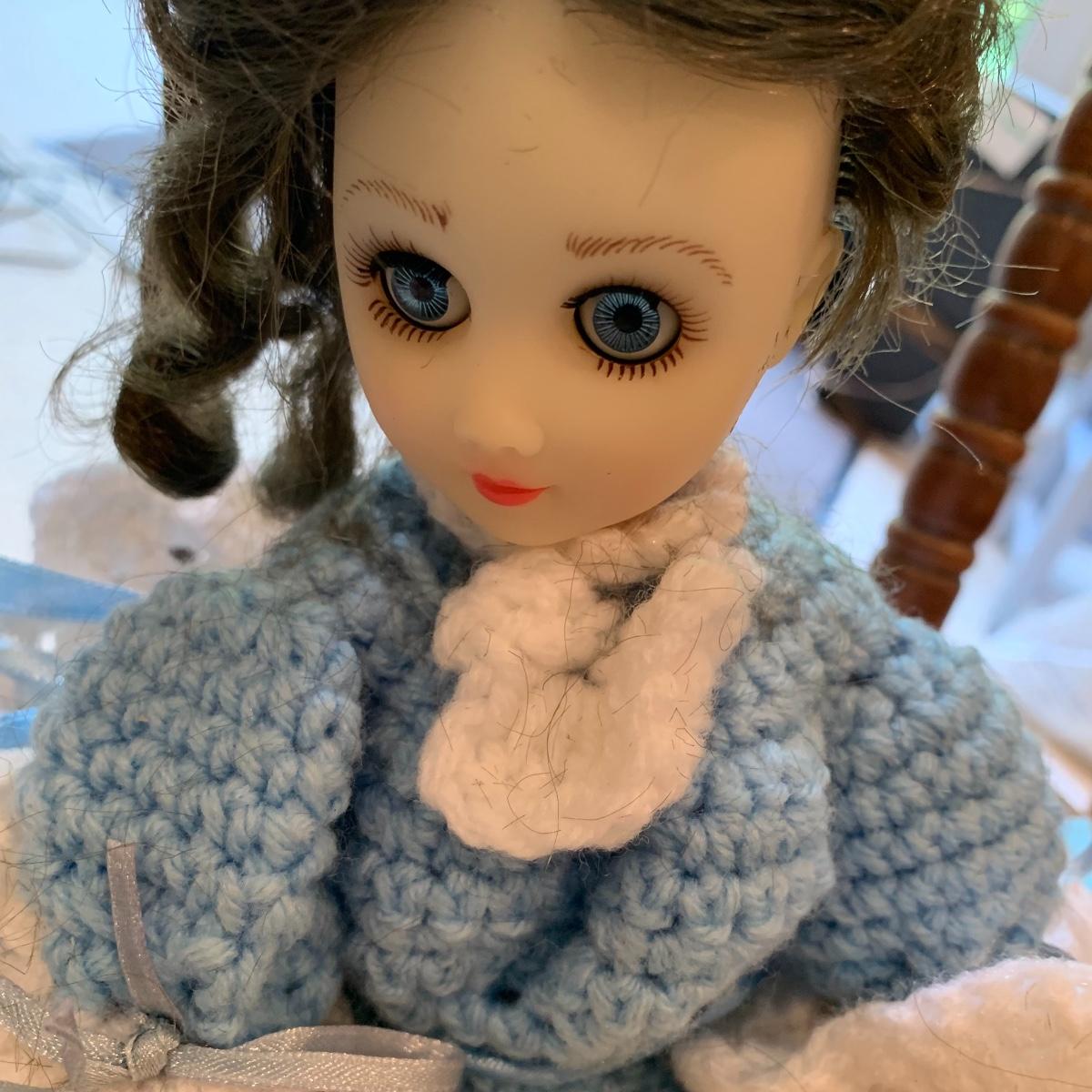 This is adorable!! Lot 100 offers two cute children’s rocking chairs as well as four dolls. The largest of the three stands 33” tall and is well dressed in winter attire and has some hair falling out. This blue eyed doll has an L makers mark on the back of her neck, see pictures. The next is an American Spirit Sacajawea doll made by Hallmark. Last is a tiny doll that appears to be porcelain. No makers mark can be found. Local pickup only.