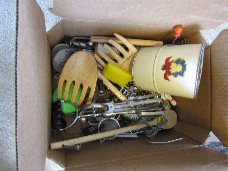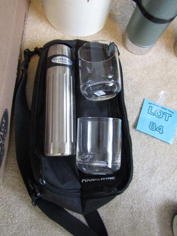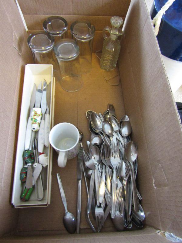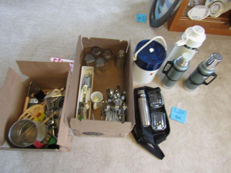 THERMOS, CARRY CASE THERMOS AND GLASSES, KITCHEN UTENSILS AND INCOMPLETE SET OF FLATWARE