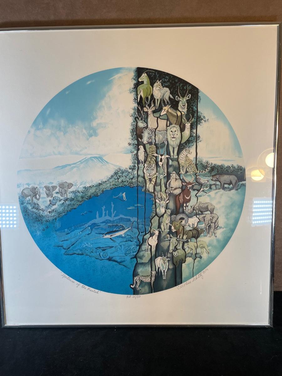 Pencil-signed and numbered A.P. 26/50. 23" x 25". Thin silver frame