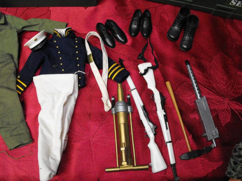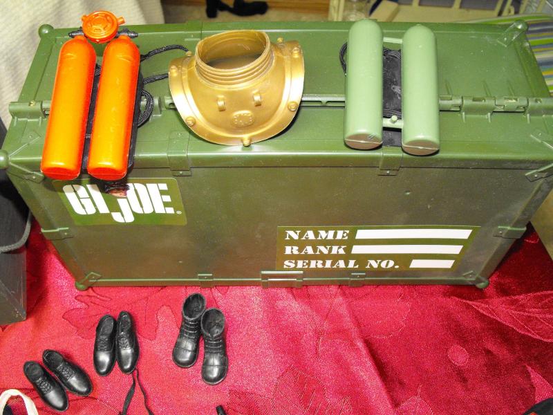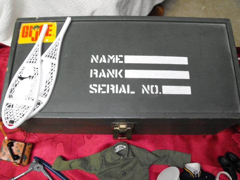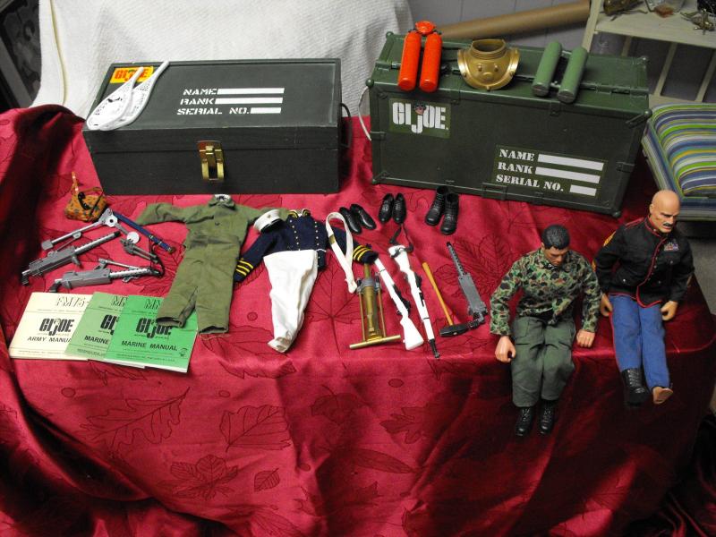 2 Action Figures 1996 and 1992, 2 Foot Lockers (1 wood 1 plastic, Play Firearms, Uniforms (Tagged GI Joe), Shoes and Boots, Snowshoes, Scuba Gear, Manuals and even a Field Phone. VG