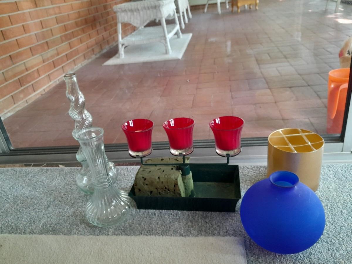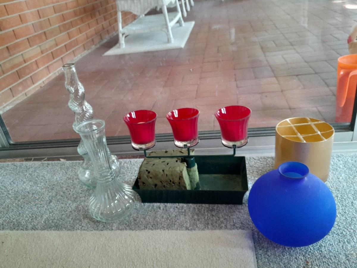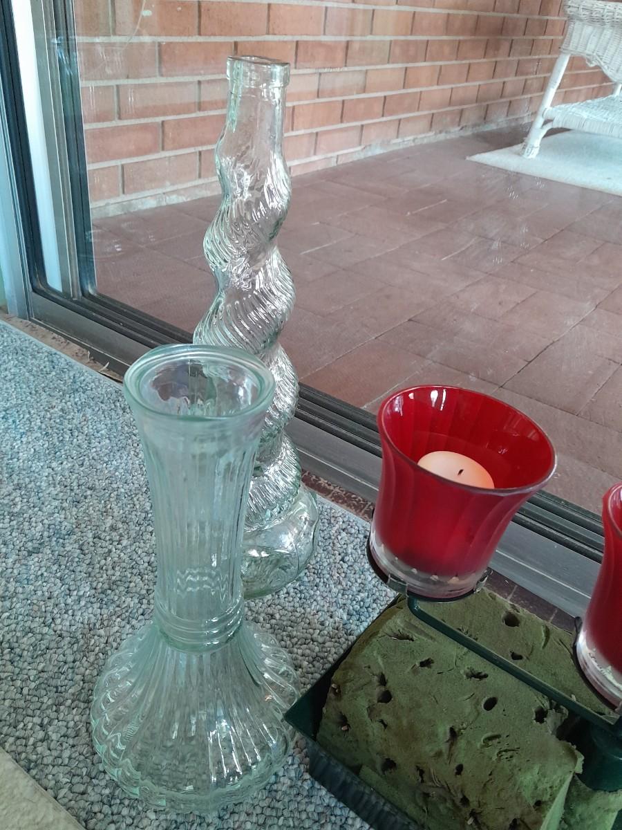 GLASS VASES AND CANDLE SCONCE