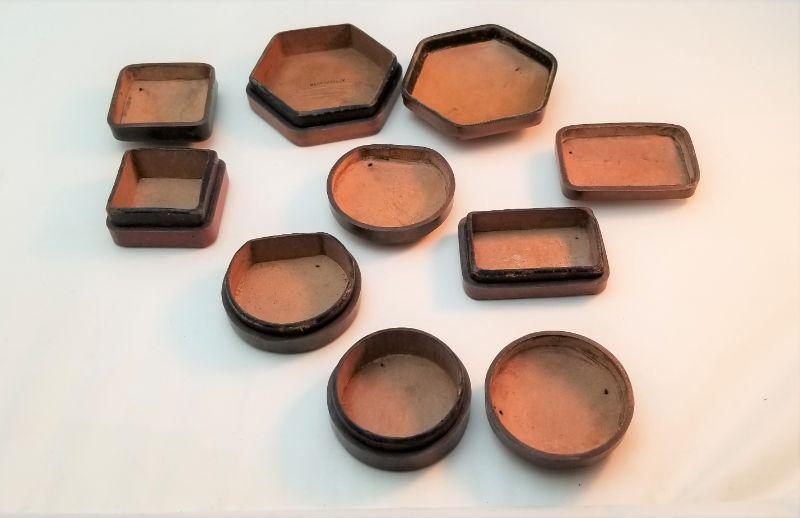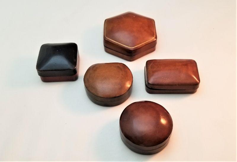 I just love little leather boxes like this - so handy to tuck a small treasure into. For scale, largest measures 2.25" x 2". All in good condition.