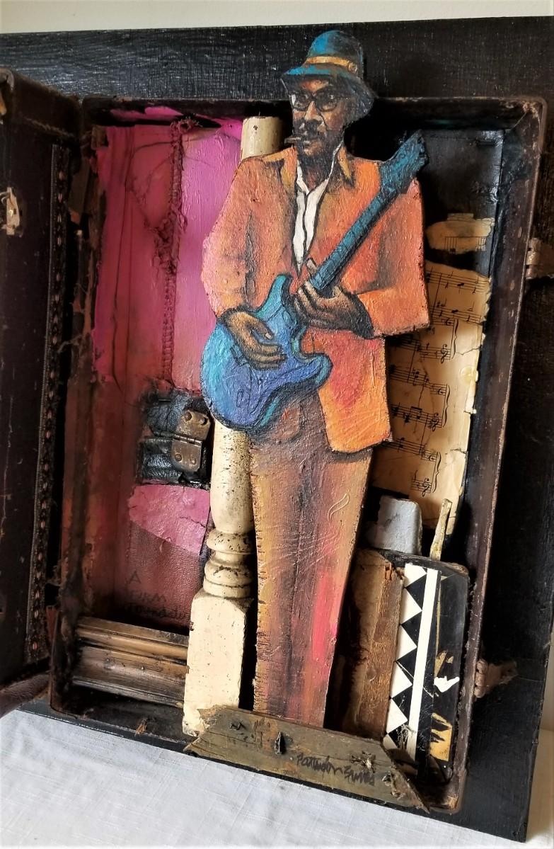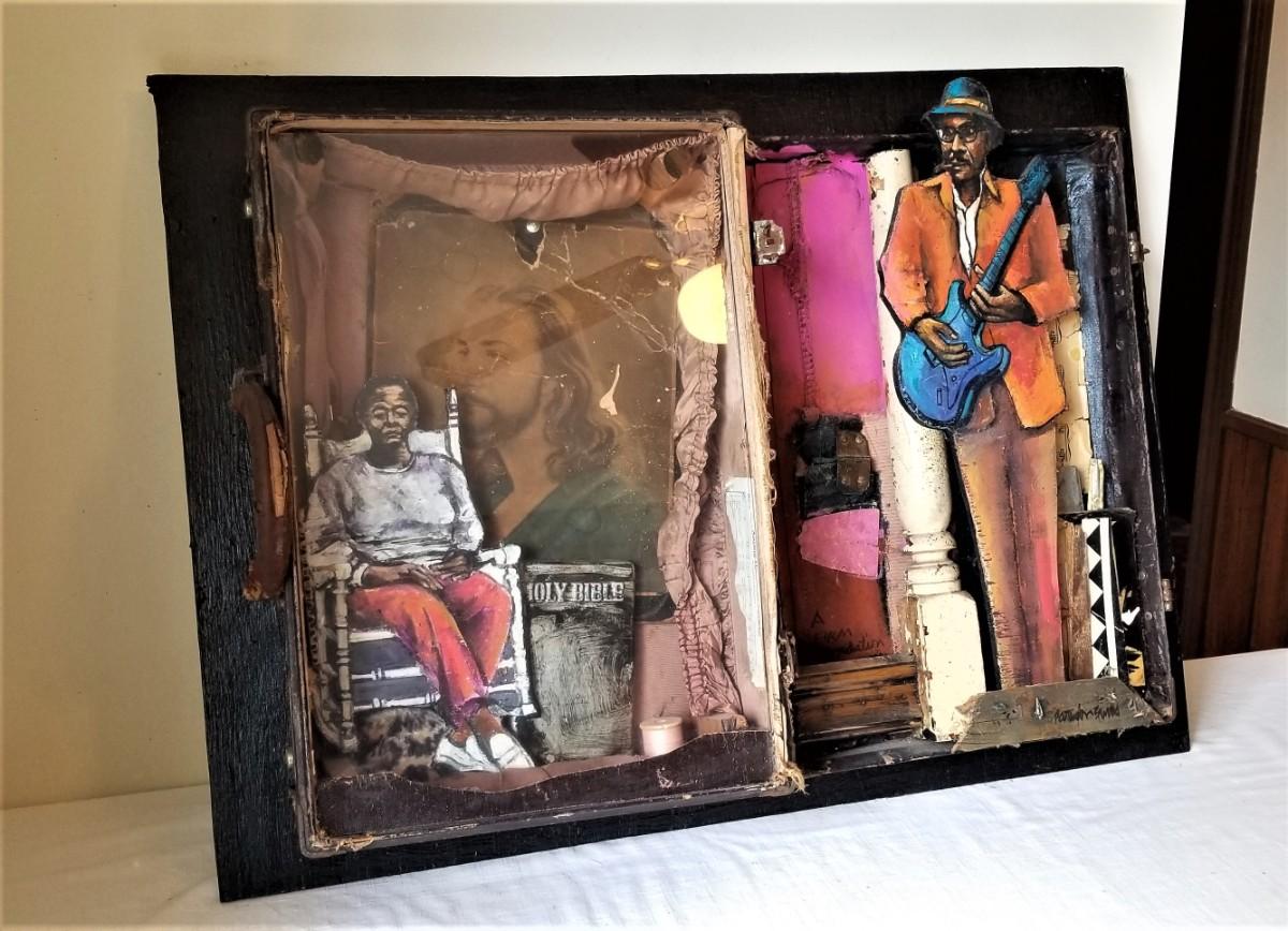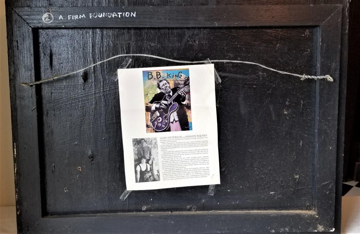 Mixed media art piece by Gary Patterson/Marion Barnes - "A Firm Foundation." A lot of their art is in private and corporate collections. The artists are known for works at the Country Music Association Headquarters, the House of Blues and for doing a painting for the cover of the Tabasco Cookbook. They specialize in works that capture the essence of jazz and blues. 29.5" across, 22" tall. Information on reverse.