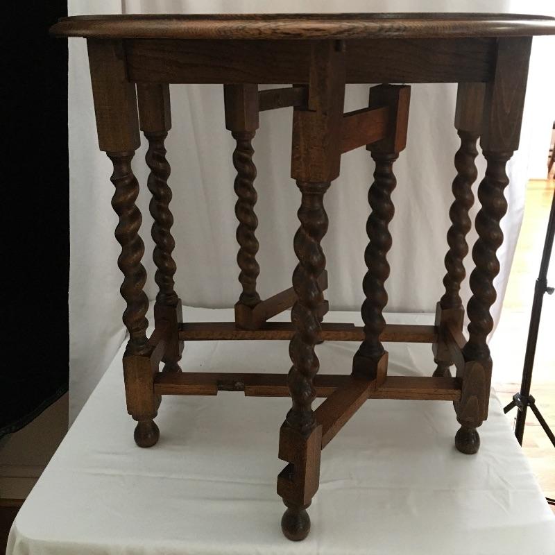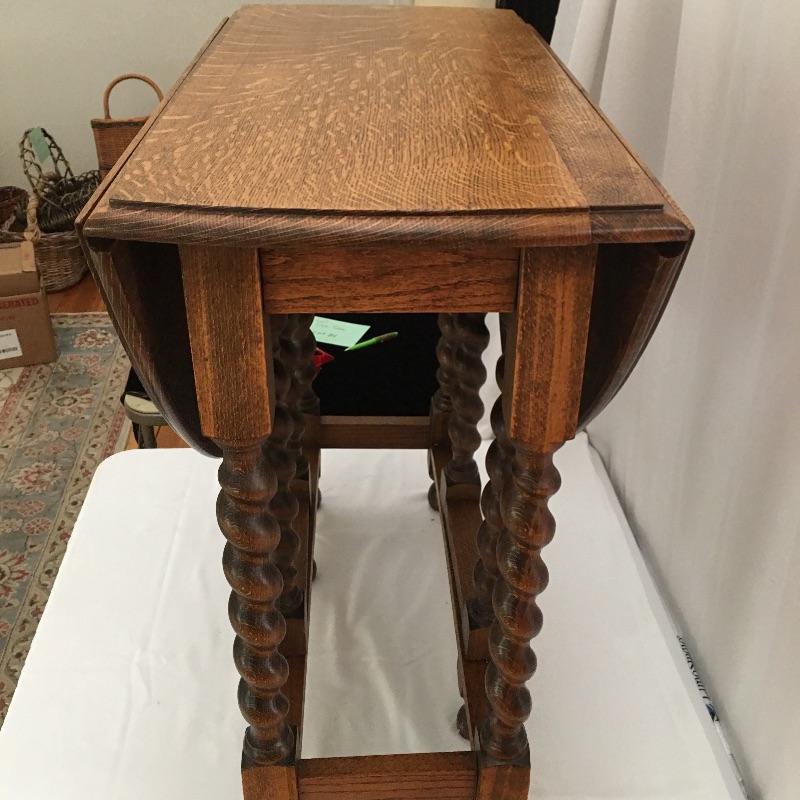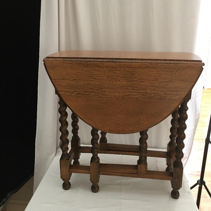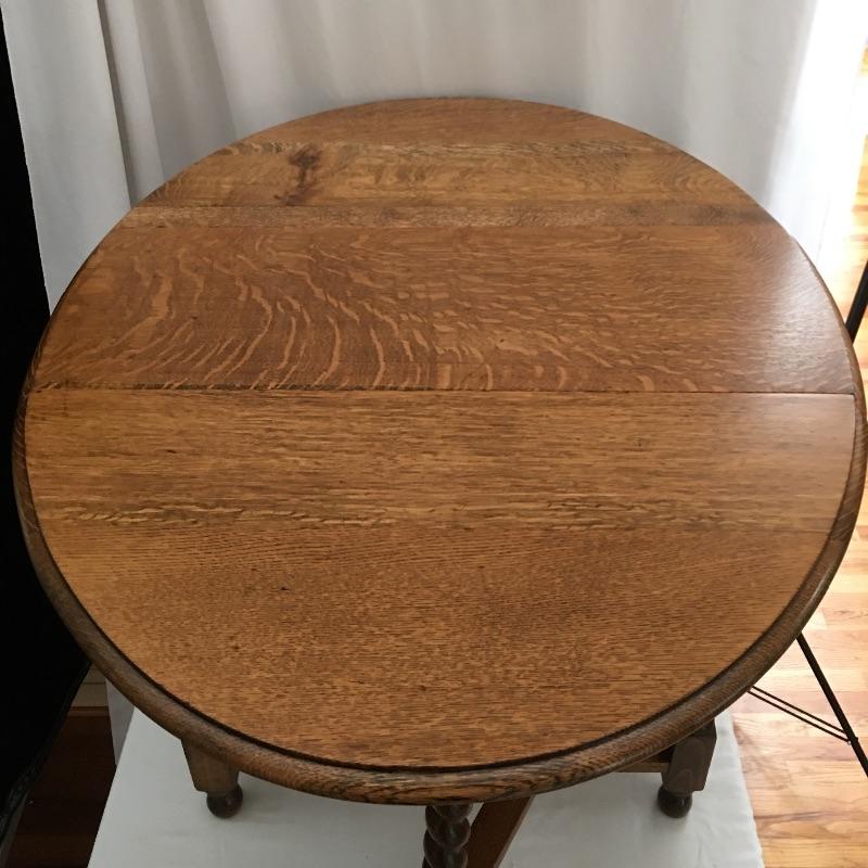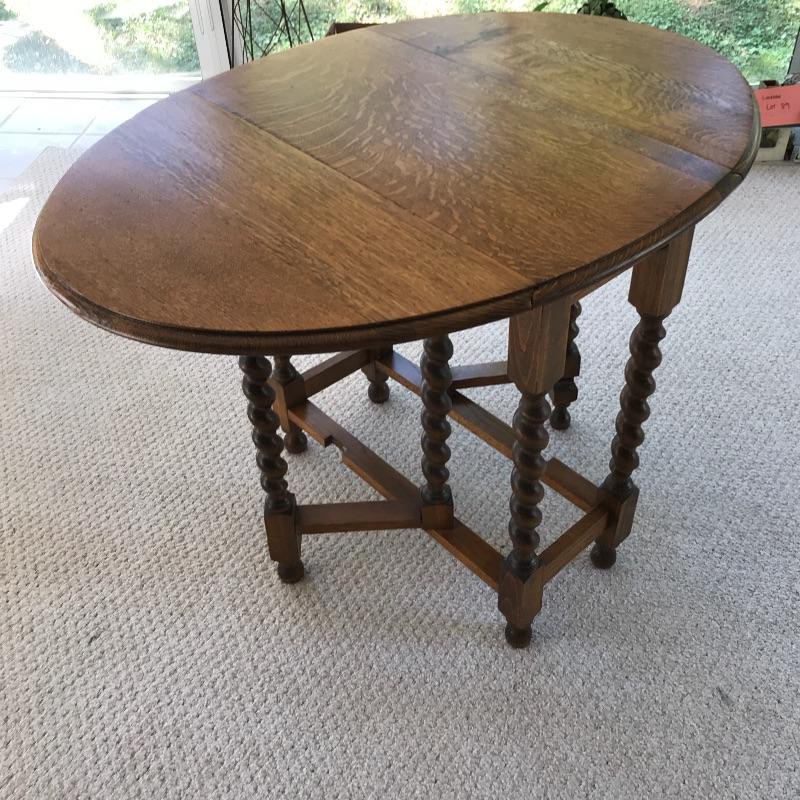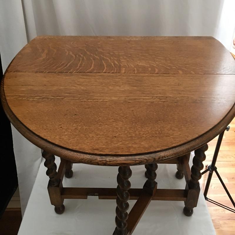Stunning oak drop leaf table. A beautiful table to go in any room in your home, folds down when you need space and opens to an oval when you need a bigger table. Table when open measures 29” x 40” x 29” and 29” x 15” x 29” when closed.