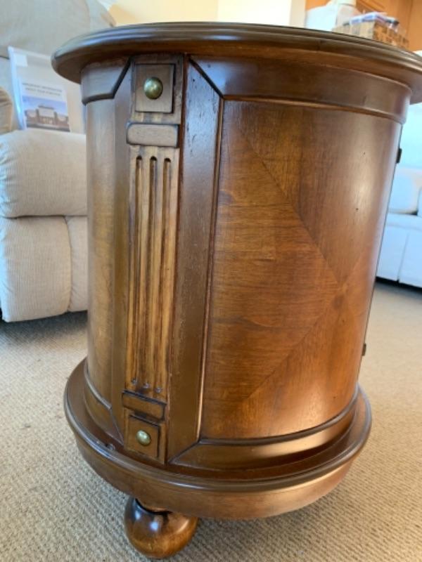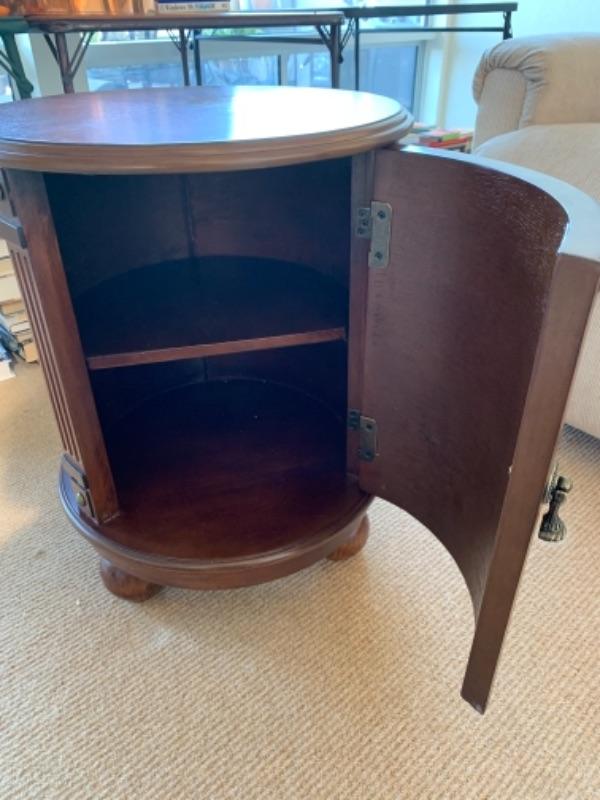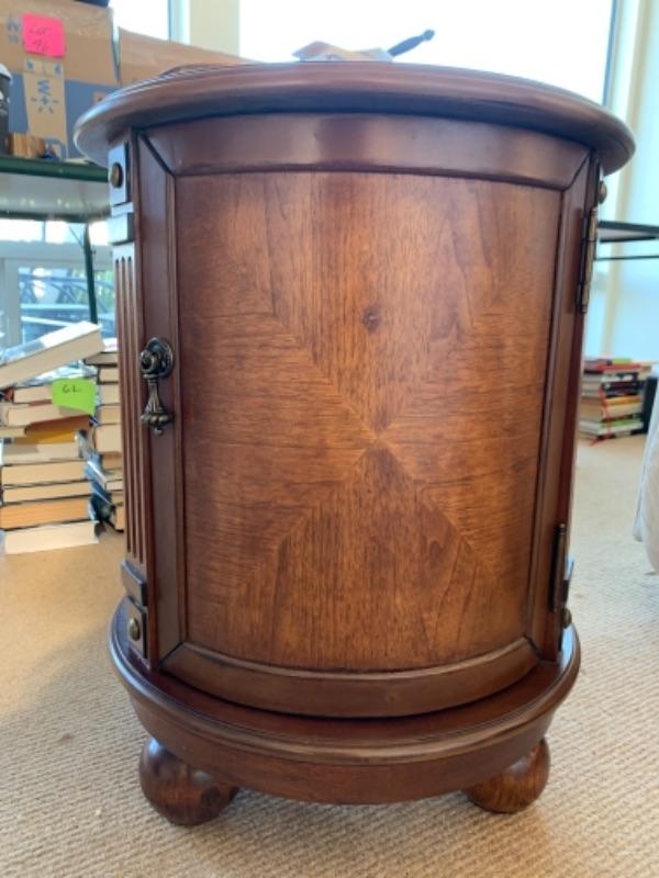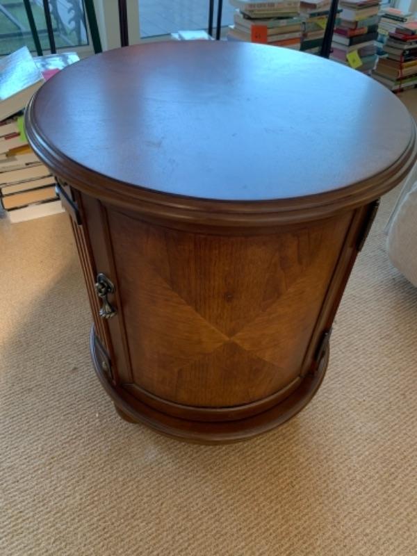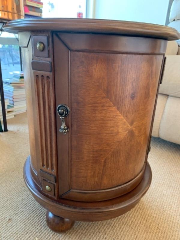 Lot 84. Occasional round cabinet, 18 inches in diameter, 24 inches high with geometric design--$45