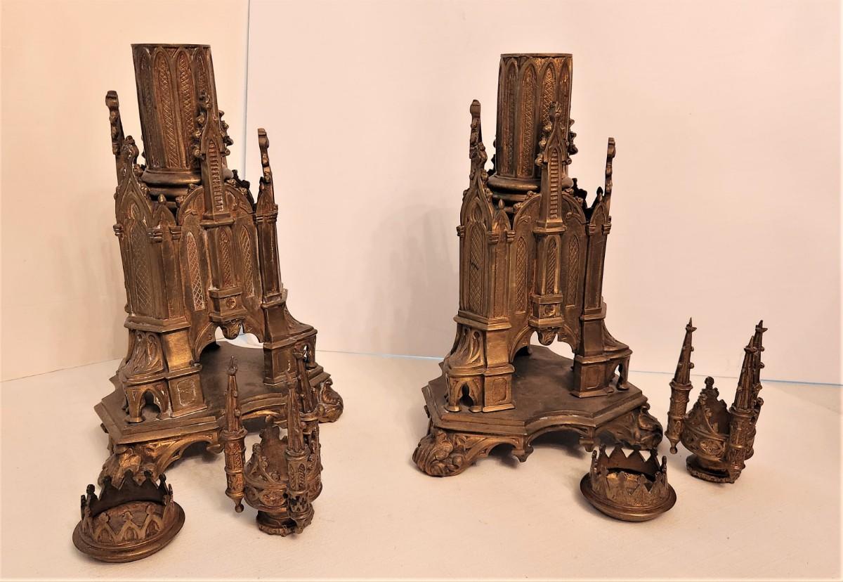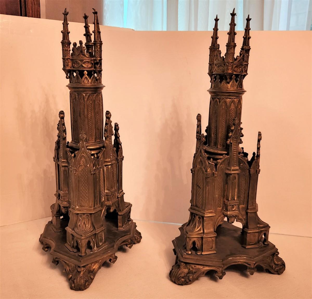 Lot #84 Pair of Fabulous Antique Gothic Church Candlesticks - probably French