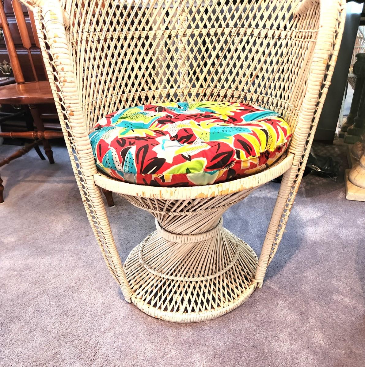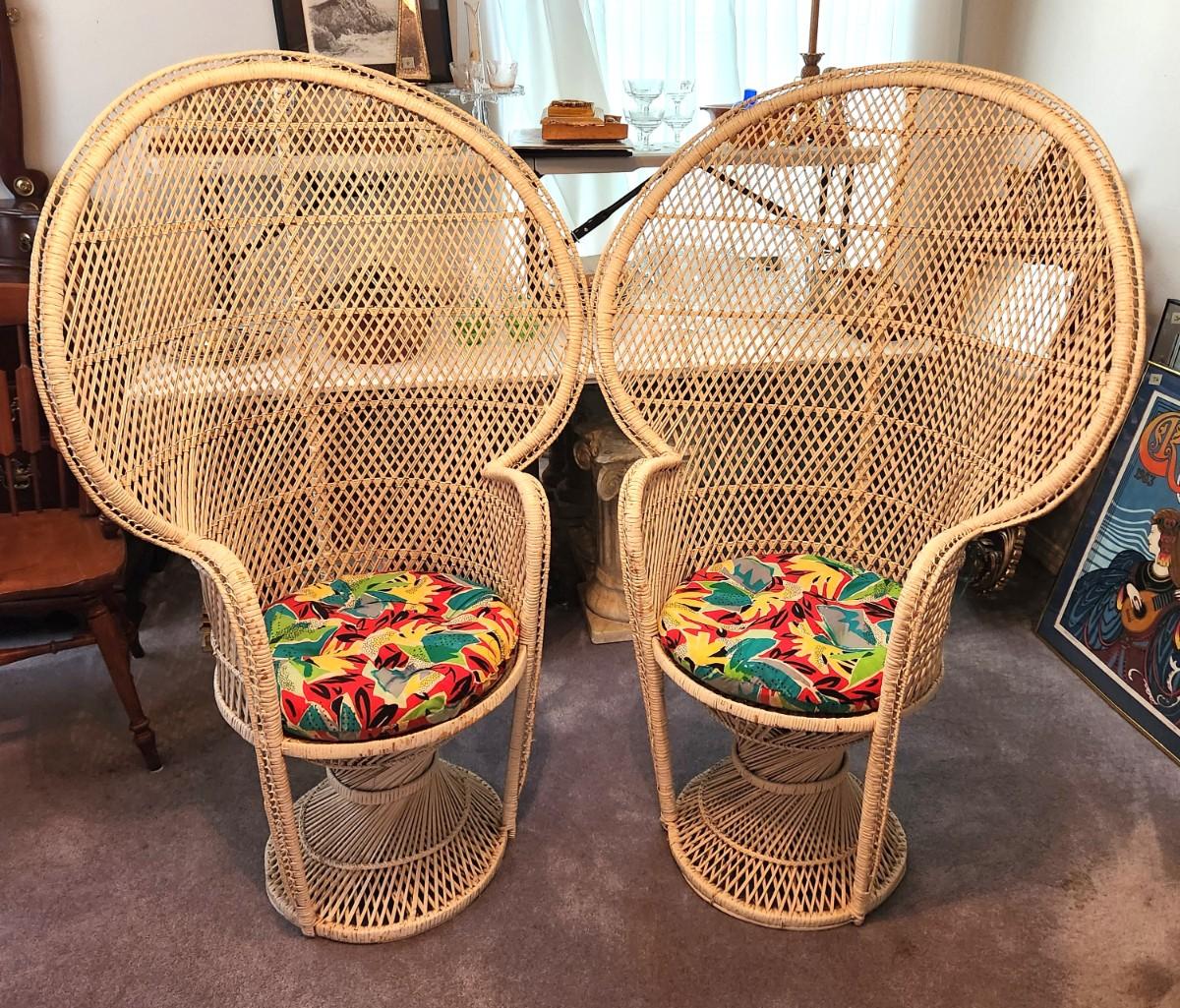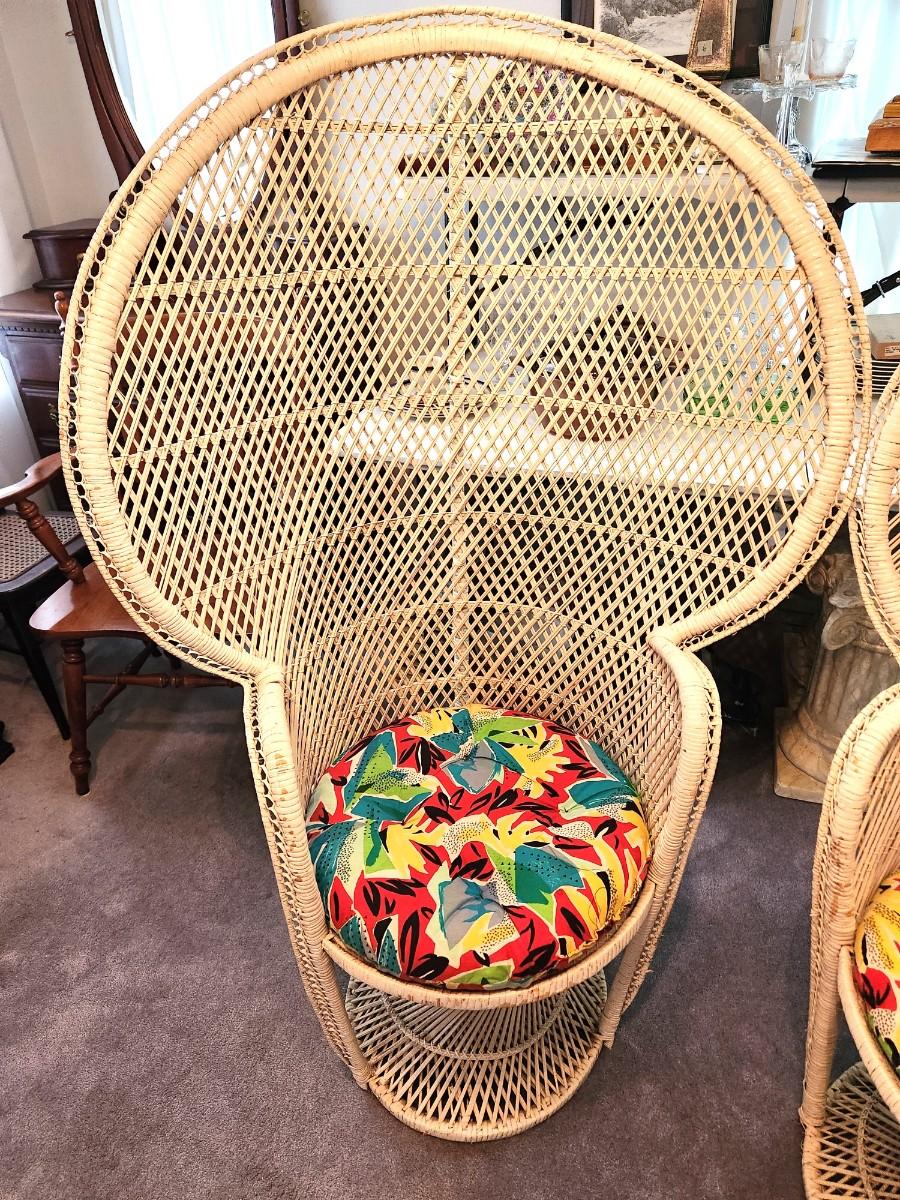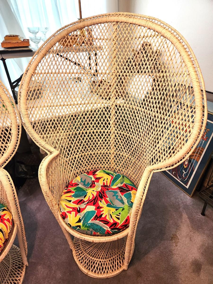 Lot #84 Pair of large vintage Peacock Chairs with cushions - 1970's