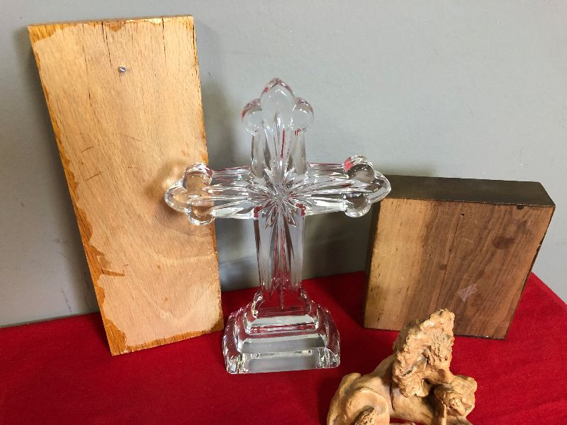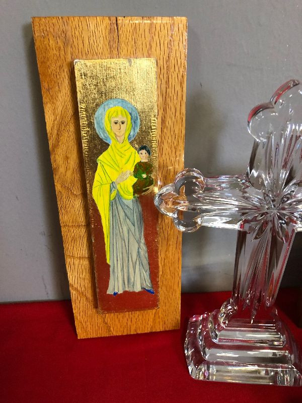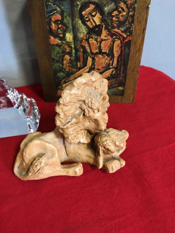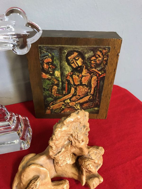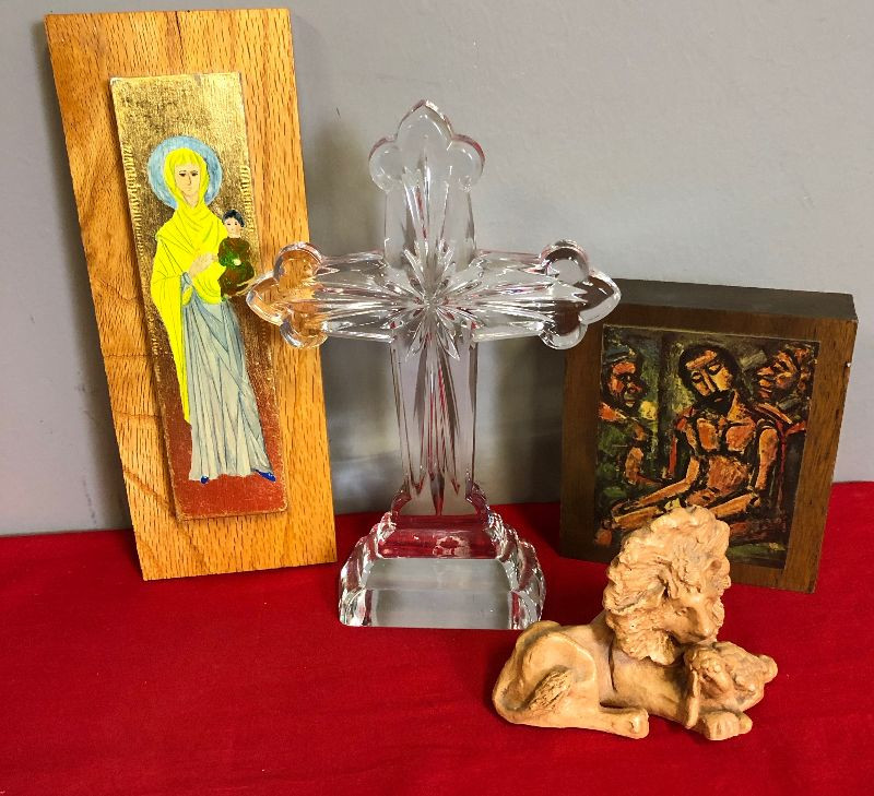 Lot 84 Religiosity items; lion/sheep cross Madonna plaque Jesus