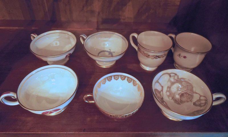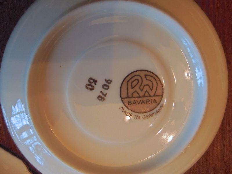 Six Castleton porcelain demitasse and saucers and an additional RW Bavaria demitasse. No chips or cracks.