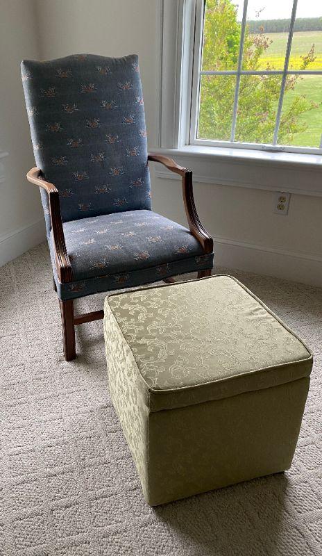 upholstered chair and ottoman