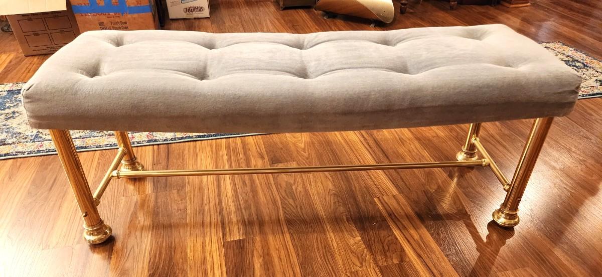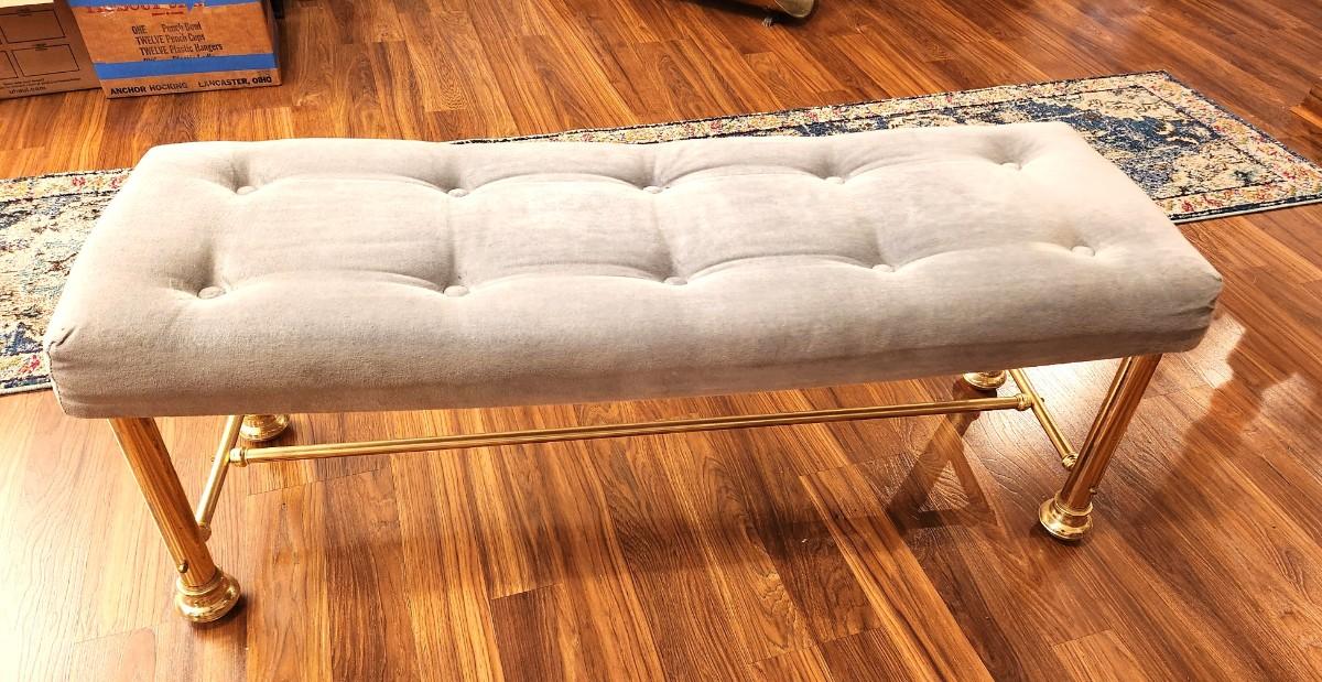 Lot #84 Upholstered Bed Bench - Brass Finish