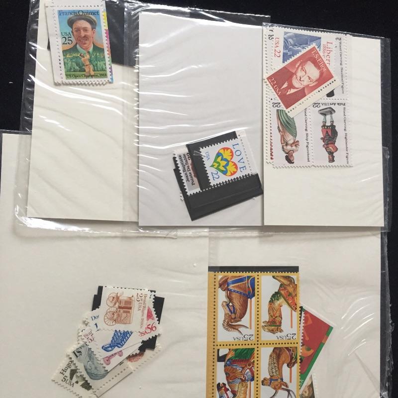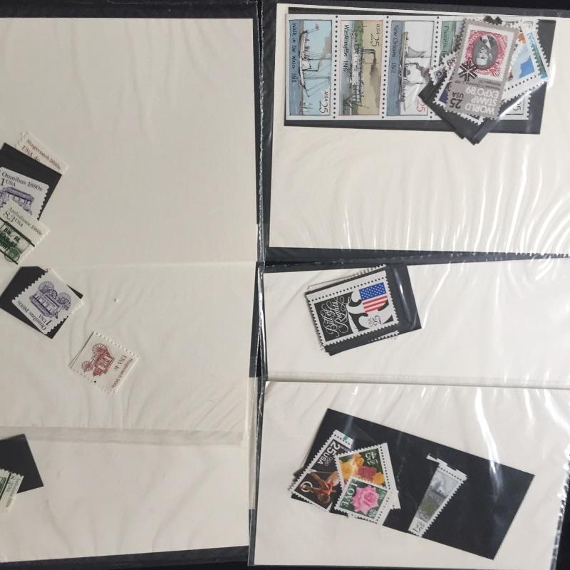 USPS Commemorative Stamp club notebook with over 30 sealed bags of stamps - see pictures.