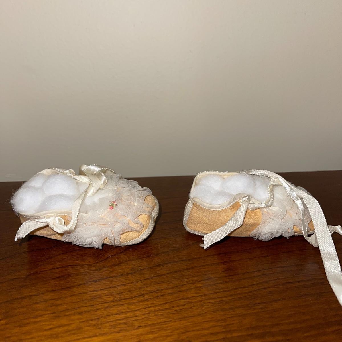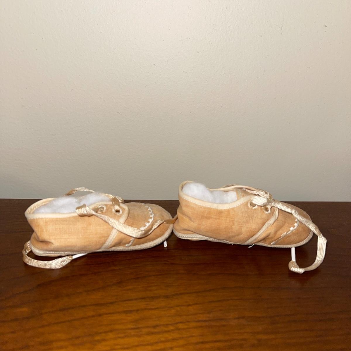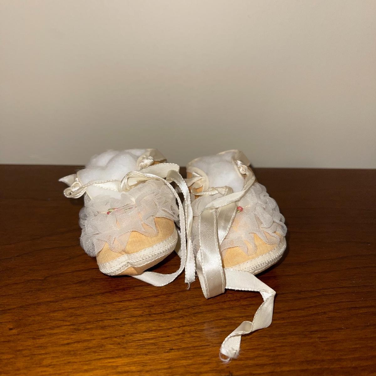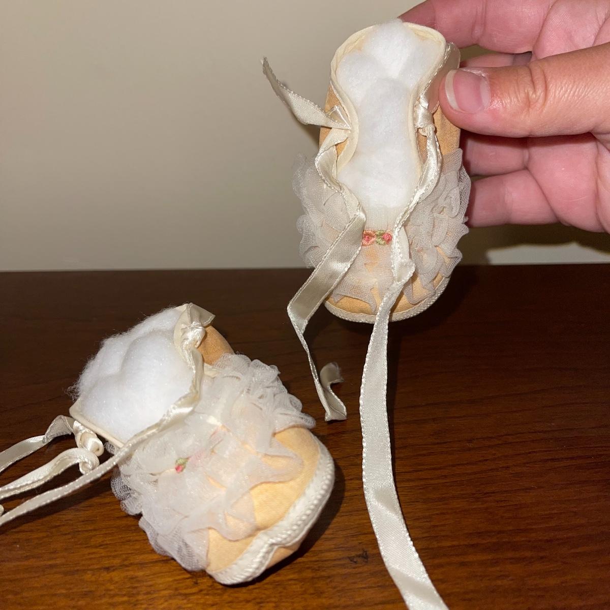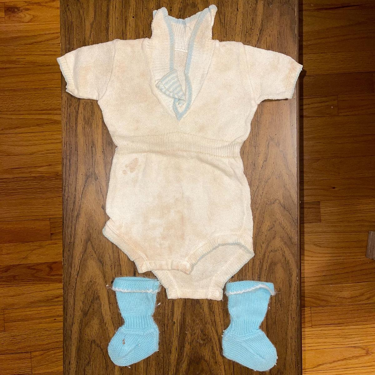Between the baby shoes, clothing, and embroidered burp cloths, this lot has the cute small clothing that any one with a baby or dolls would want to dress them in. These vintage baby items are in good condition and include a pillowcase as well as four pairs of shoes, about ten pieces of apparel and two blankets with a couple more sweet vintage linens.