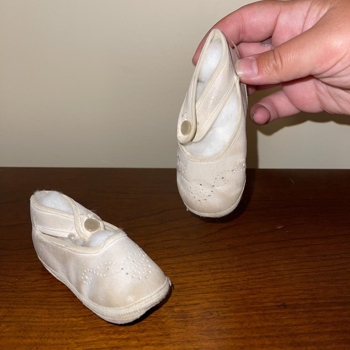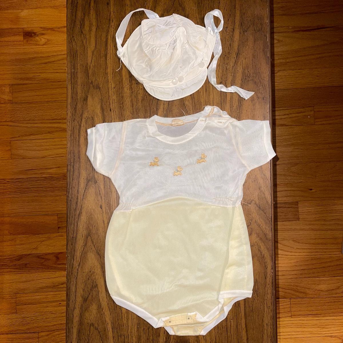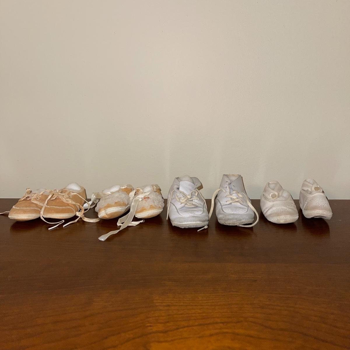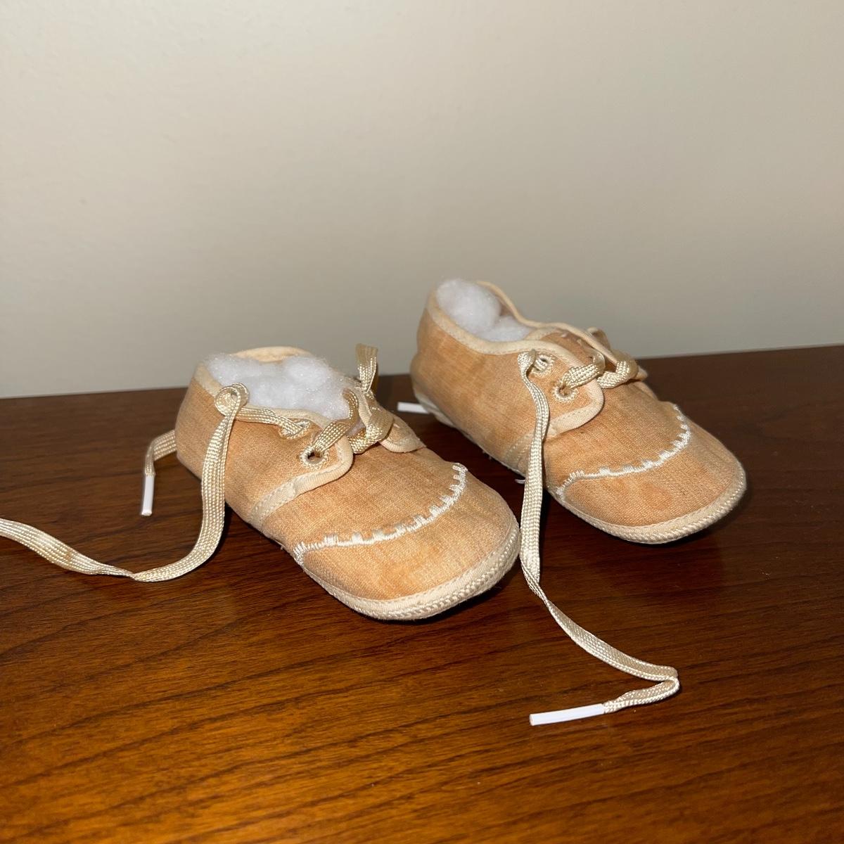Between the baby shoes, clothing, and embroidered burp cloths, this lot has the cute small clothing that any one with a baby or dolls would want to dress them in. These vintage baby items are in good condition and include a pillowcase as well as four pairs of shoes, about ten pieces of apparel and two blankets with a couple more sweet vintage linens.
