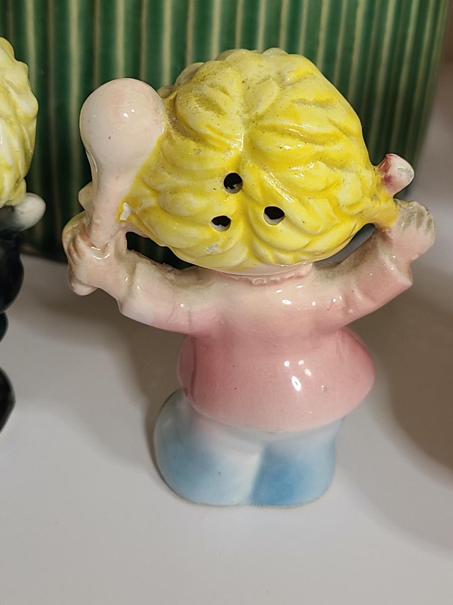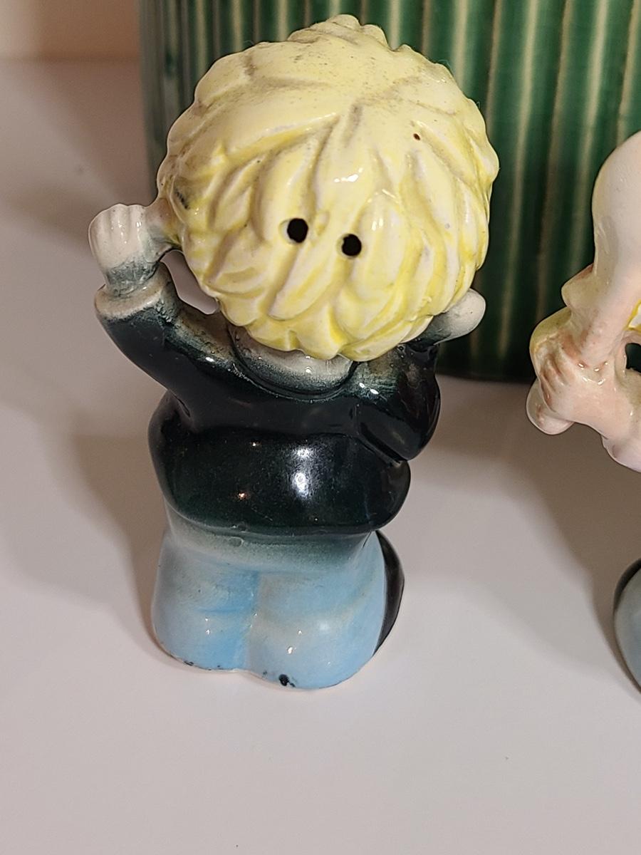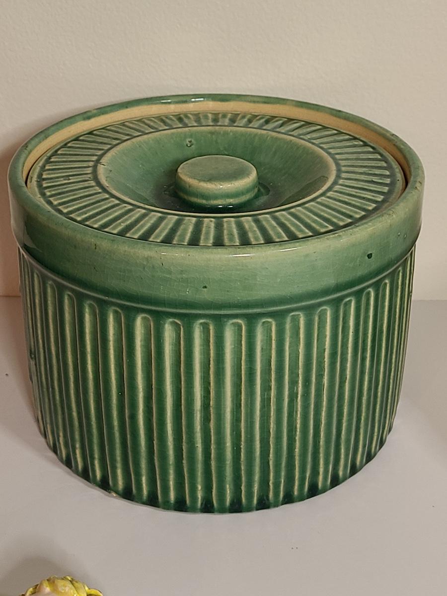 Fun lot of vintage kitchen items including: two sets of salt and pepper shakers, a ceramic tomato canister, and a green lidded pottery canister! Please see all pictures as they are the best representation of the items. The pictures show condition, measurements if taken, and what is included in the lot. Due to the large amount that we photograph and the time frame, we are not always able to take measurements. All items unless noted, are pre-owned and have been used. If you purchased furniture, you must bring help. We do not allow one person to carry large furniture out on their own. Bring help, tools and a truck for the safety of our client’s homes, and your personal safety. Company policy. Thank you.