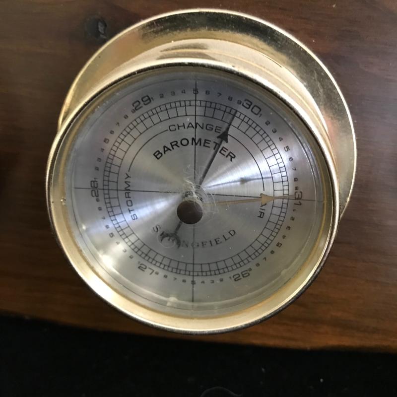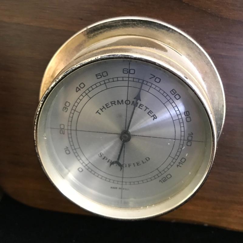 Lot 83 - Barometer/Thermometers and Brass ship bookends.