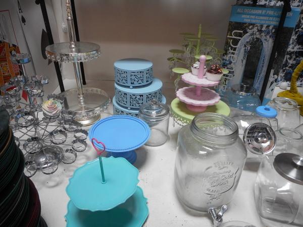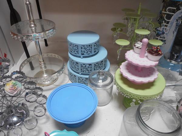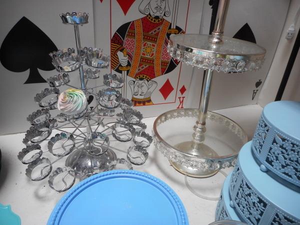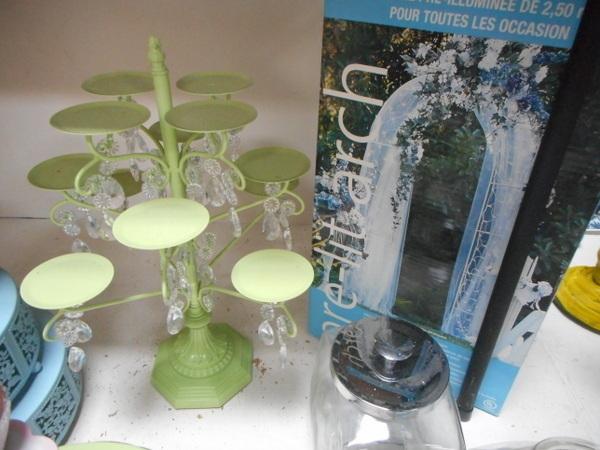 Lot 840 - Cake and Cup Cake stands + Assorted glassware