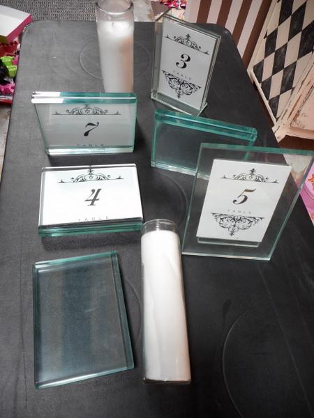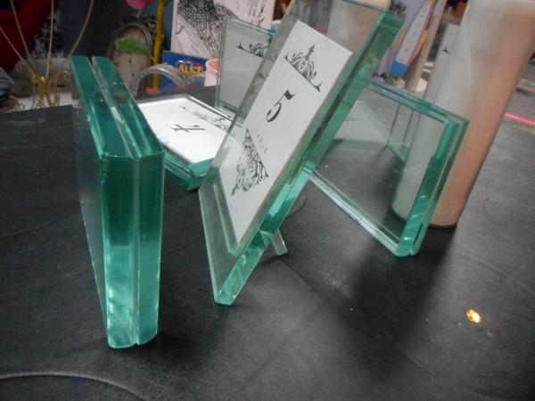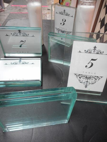 Lot 841 - Group of 9 Glass Table Seating Markers - 1'' thick