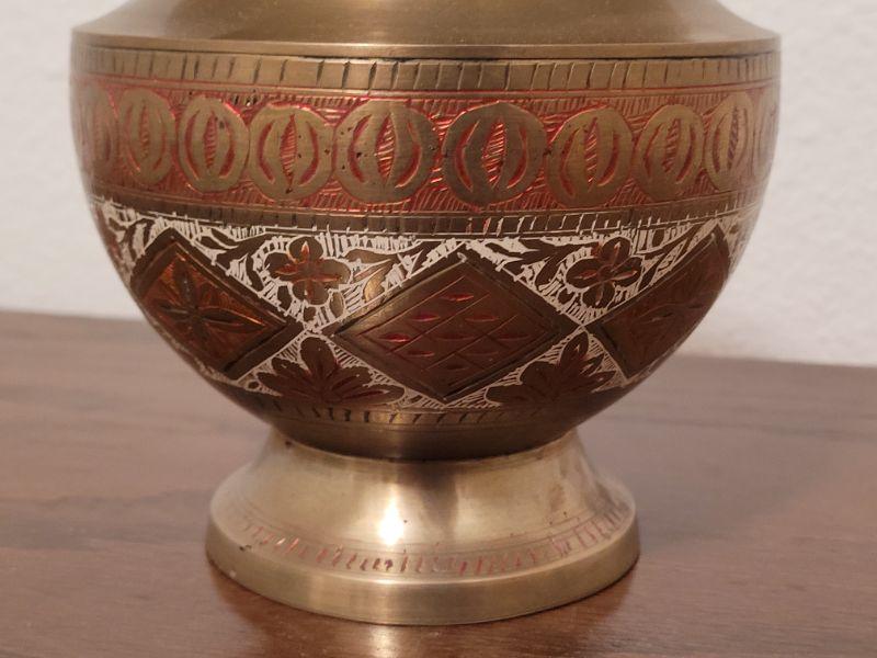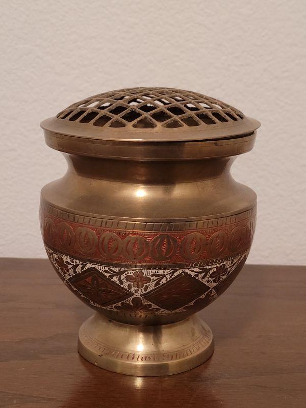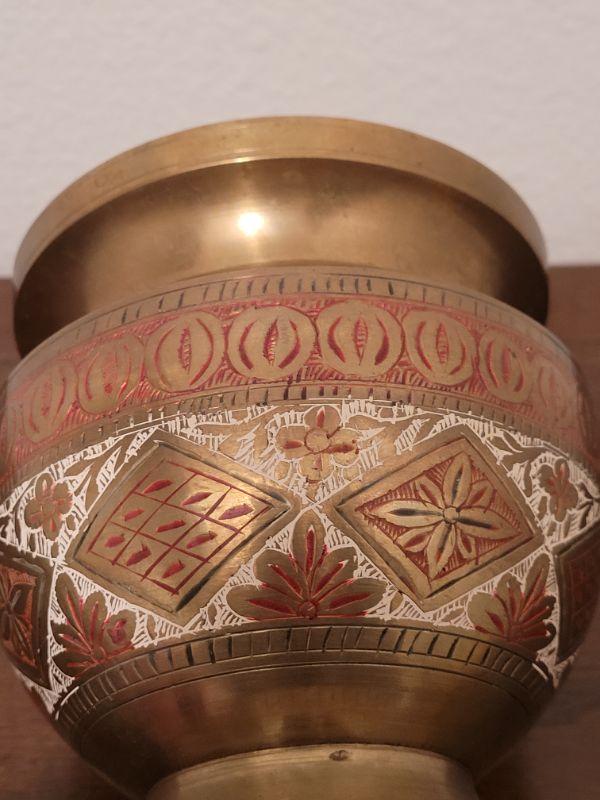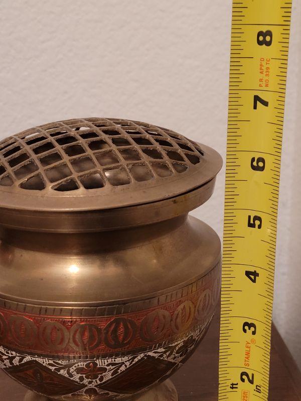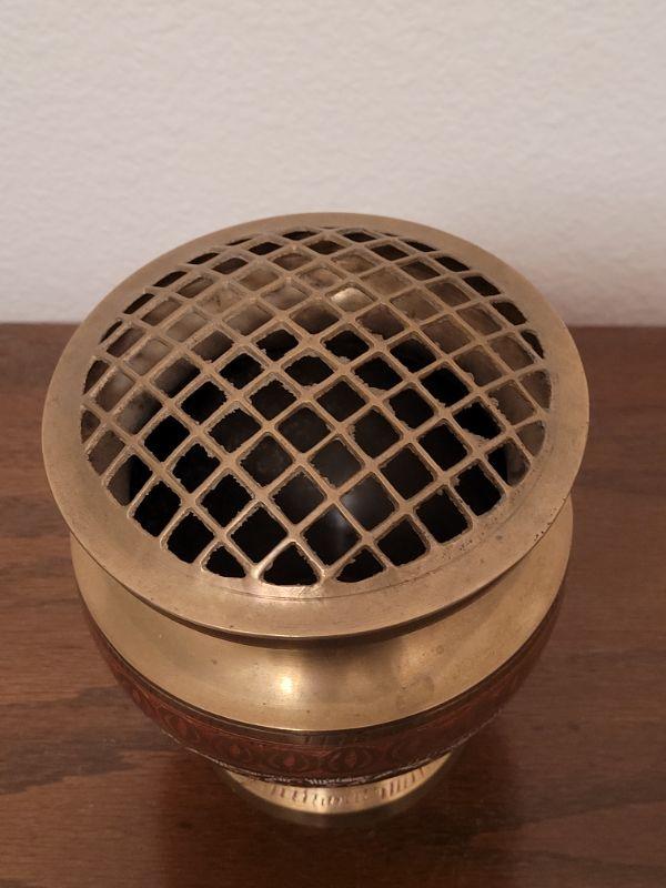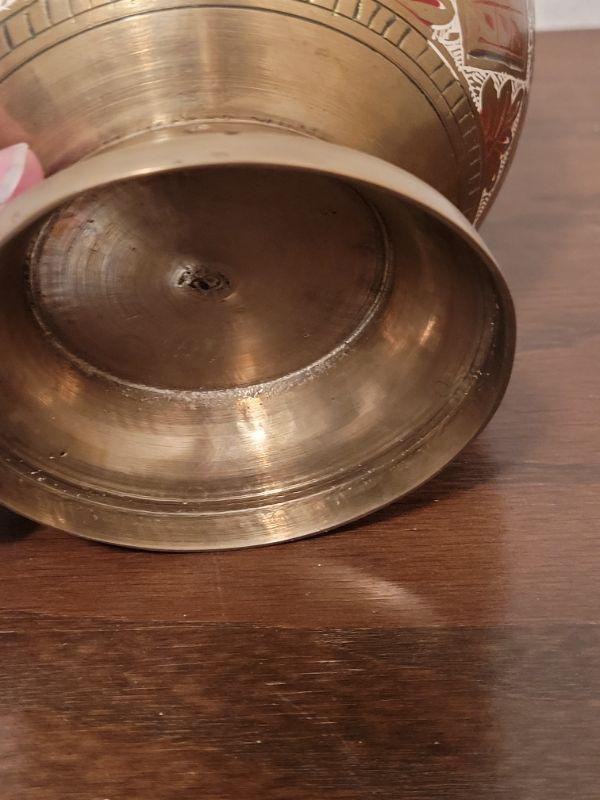 Lot 841: Persian Enamel and Brass Vase with Flower Frog