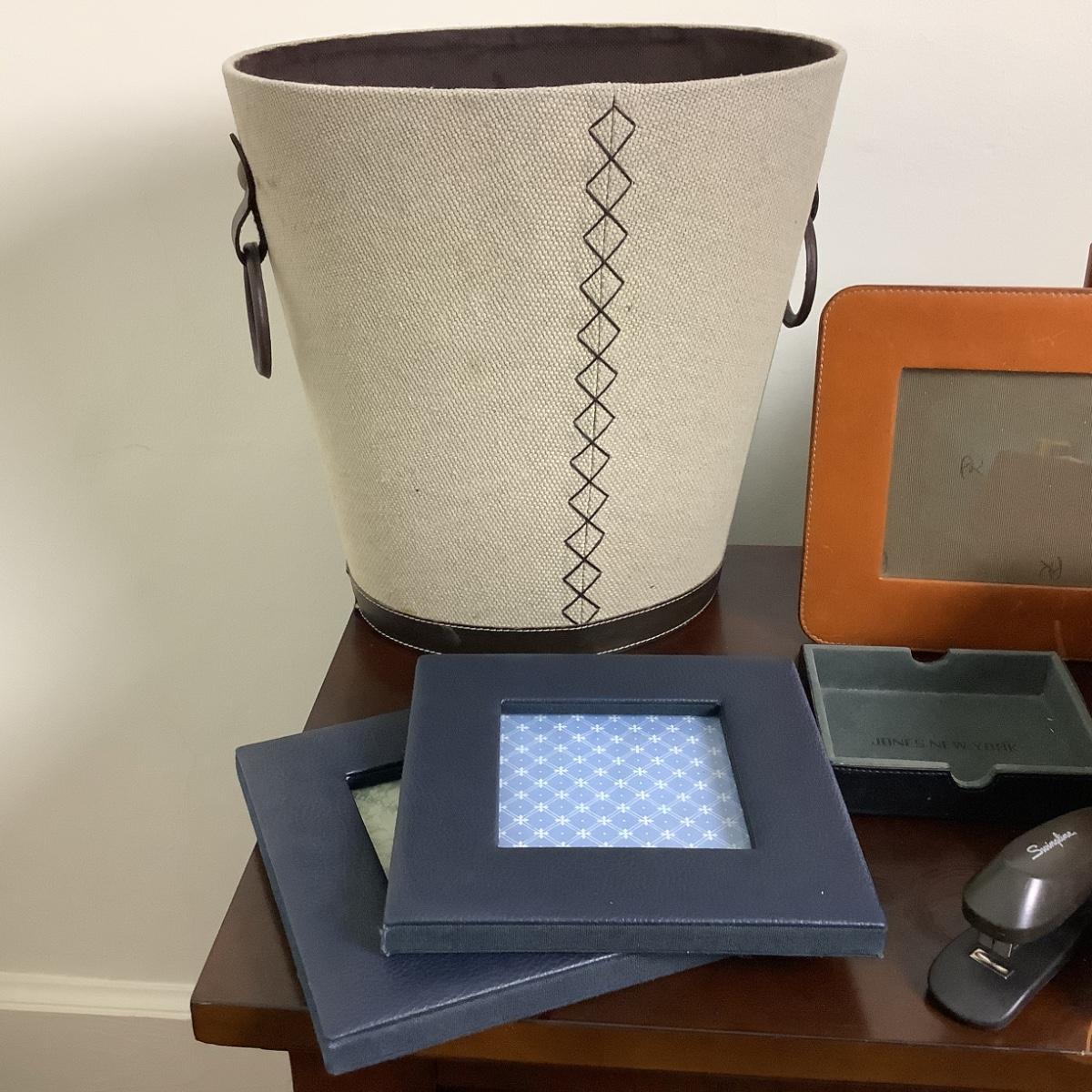 Assorted Leather Frames/Organizers/ Trimmed Waste Can