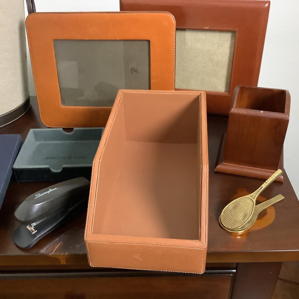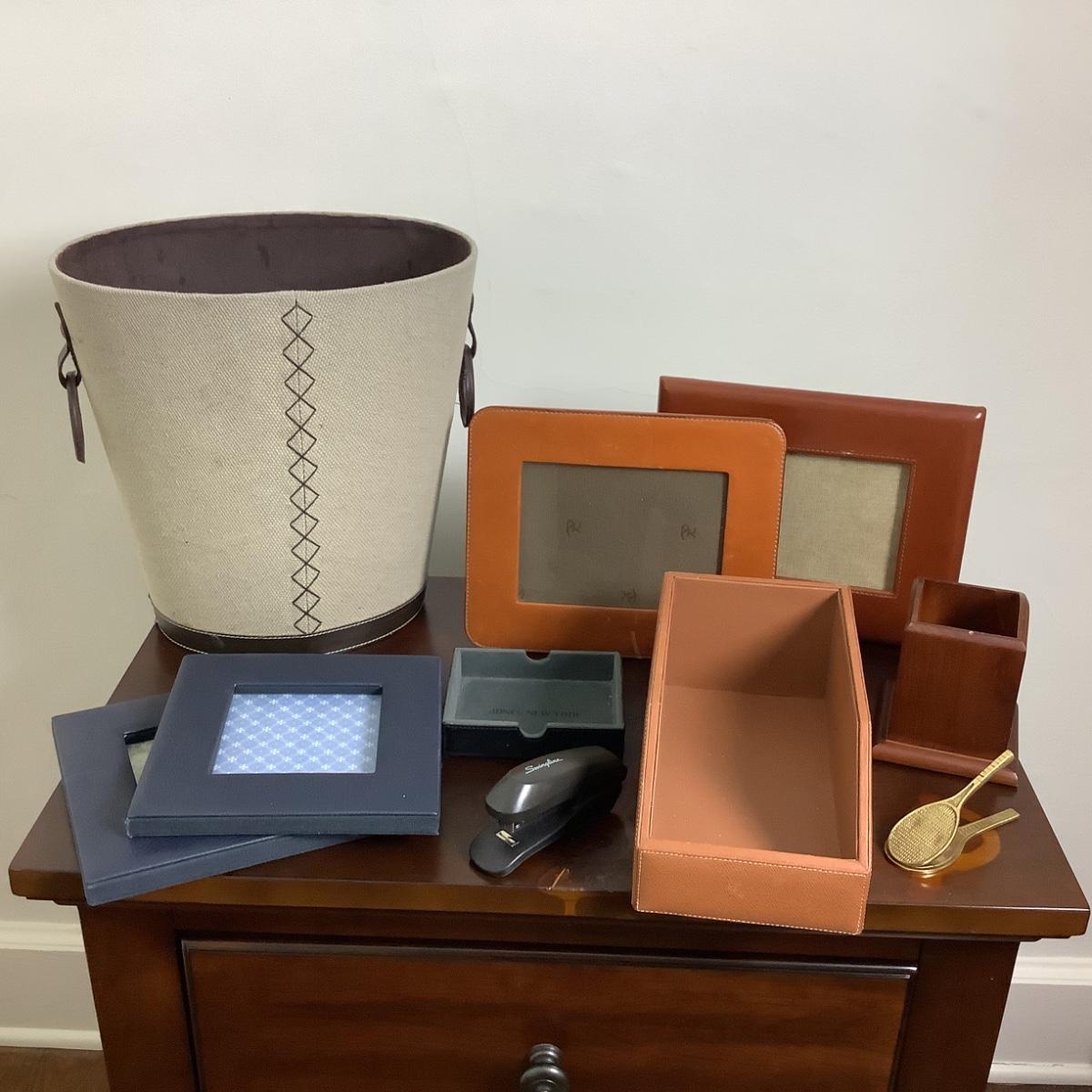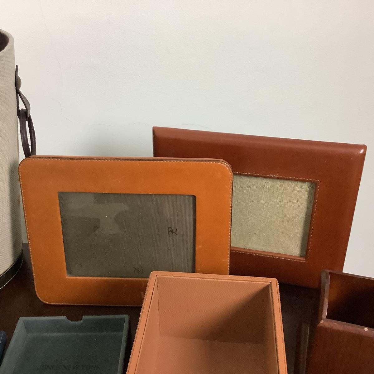 Lot 8410. Assorted Leather Frames/Organizers/ Trimmed Waste Can