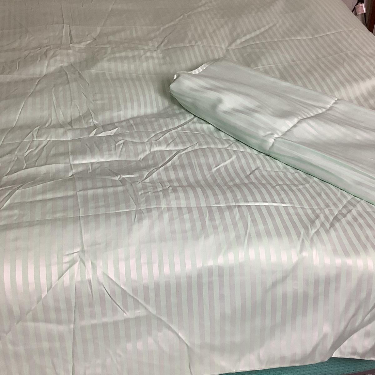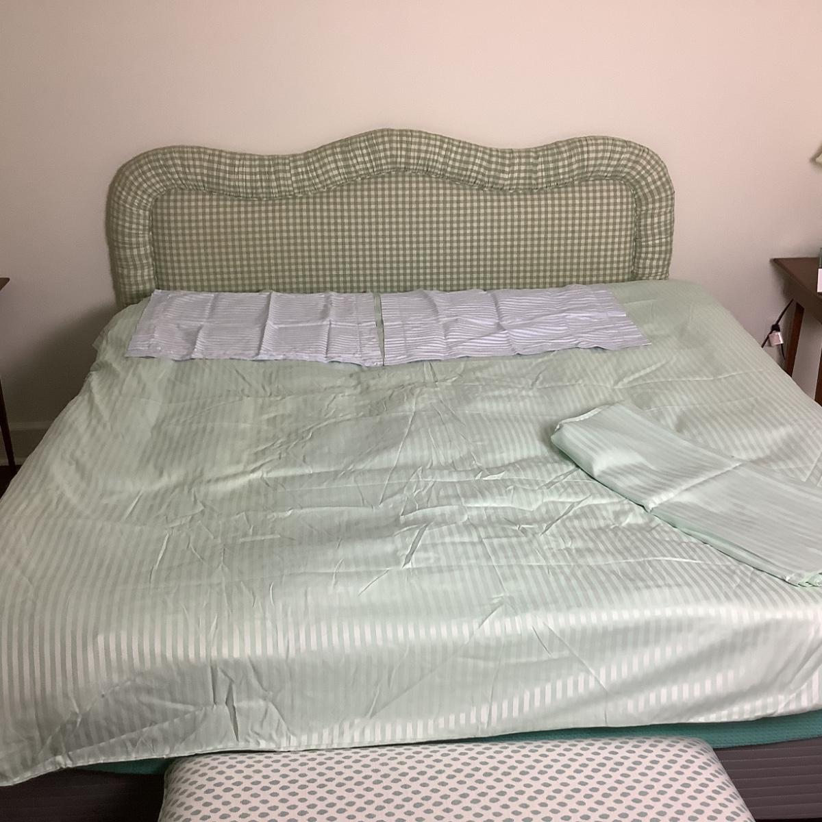 Schweitner Queen/King Lt. Green Duvet Cover, Matching Flat Sheet/Pair of Lt Blue Pillow Shams
