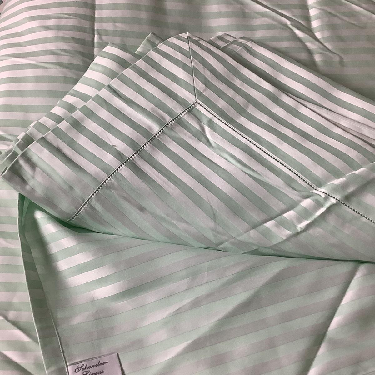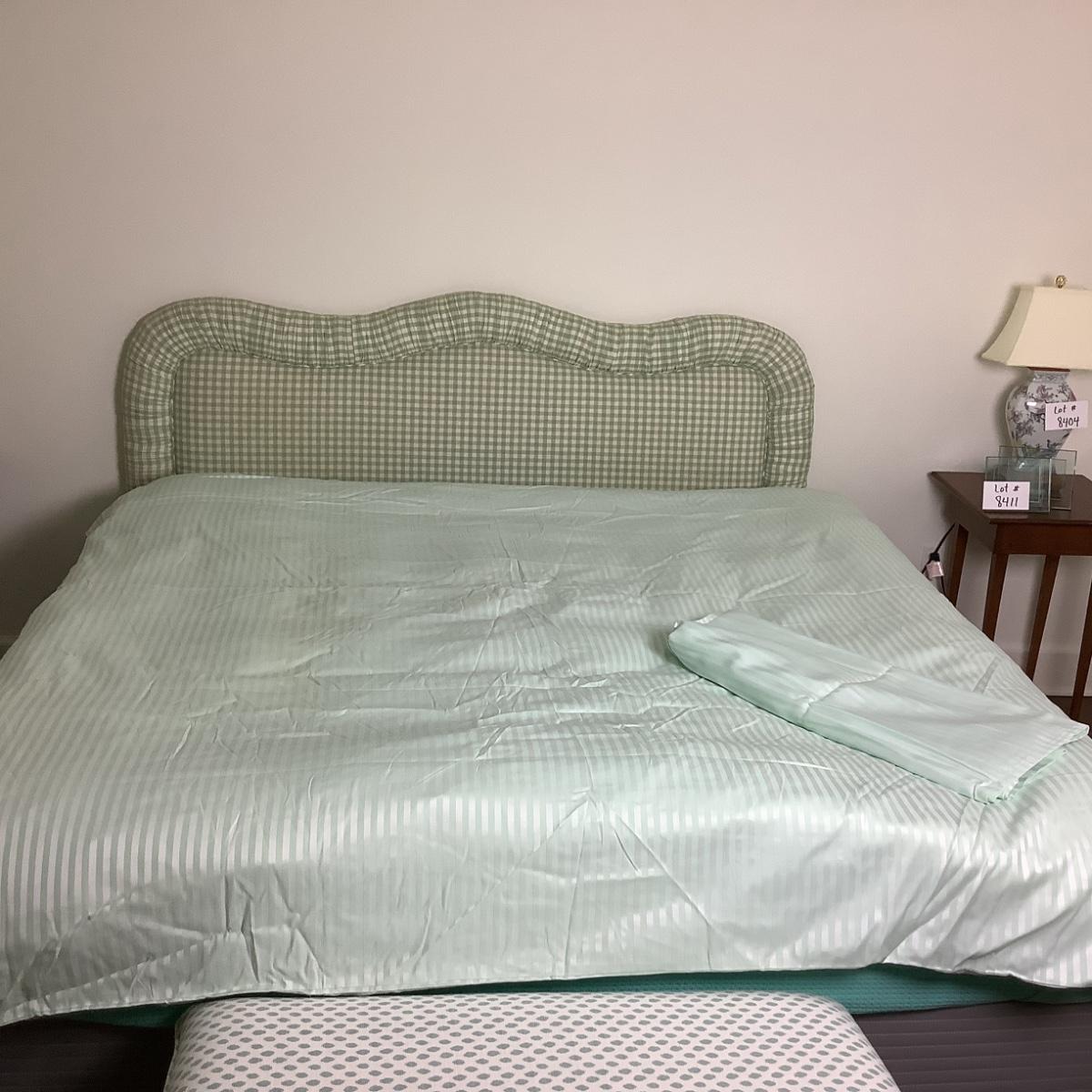 Lot 8412 Schweitner Queen/King Lt. Green Duvet Cover, Matching Flat Sheet/Pair of Lt Blue Pillow Shams