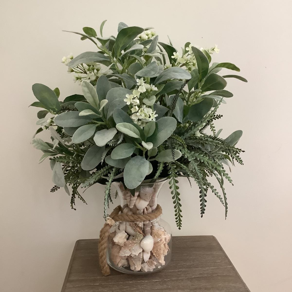Lot 8417. Nautical/Floral Arrangement in Clear Vase