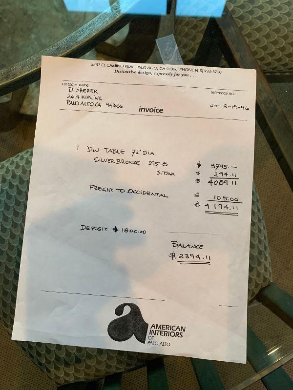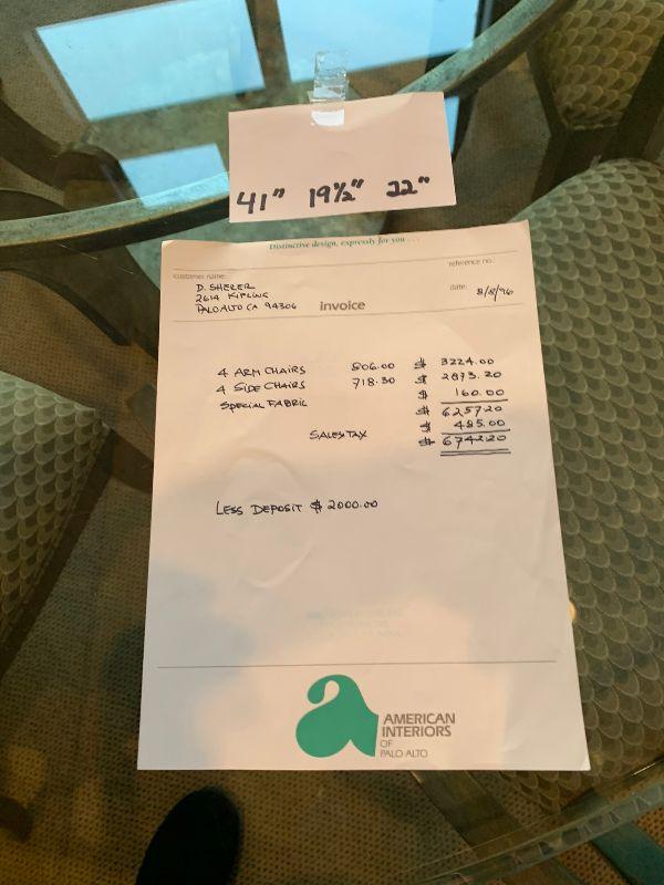 American Interiors 72" Round Table Silver Bronze $4,089.11 and 4 Arm Chairs and 4 Side Chairs $6,742 Total price table and chairs = $10,831