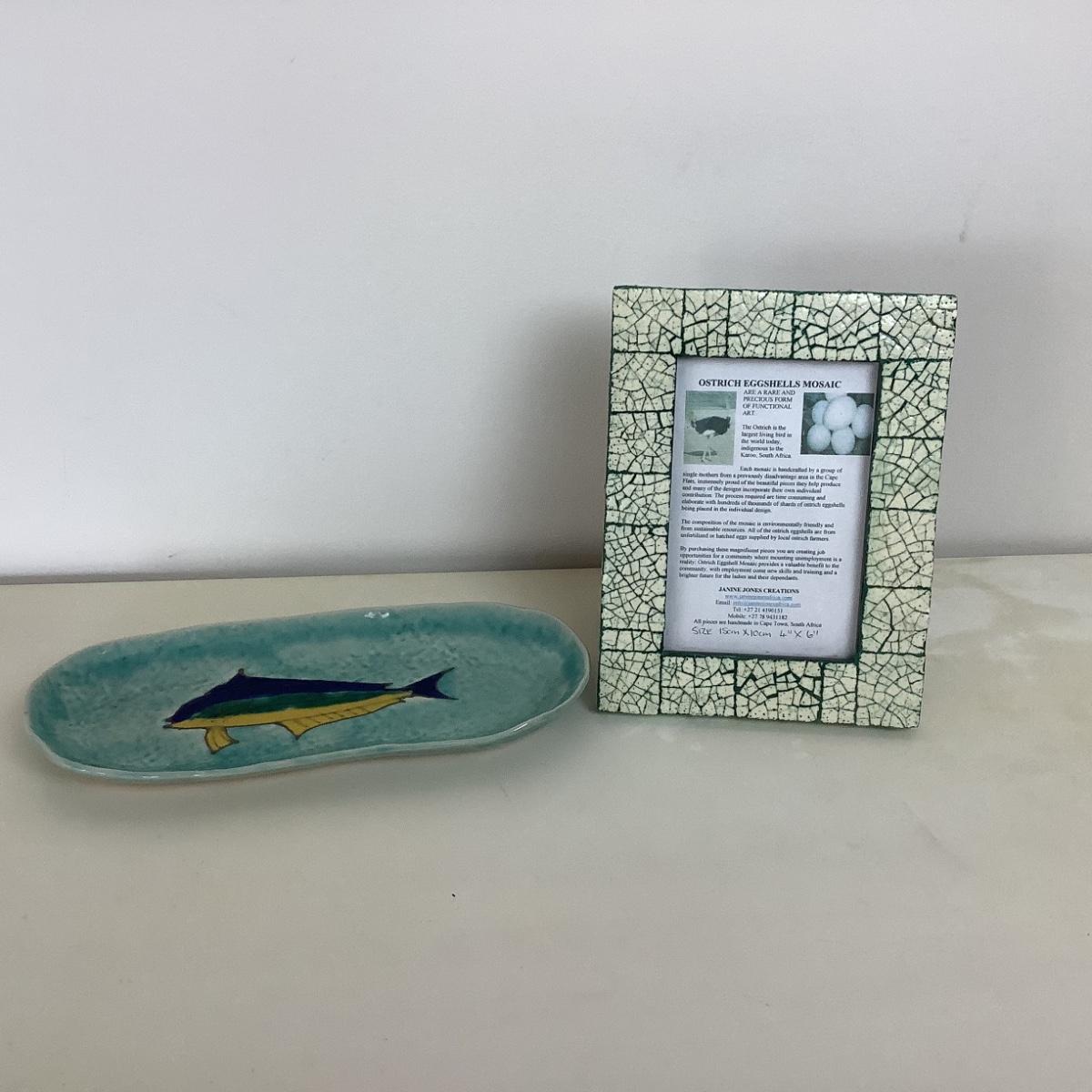 Lot 8423. Ostrich Egg Mosaic Frame by Janine Jones Creations / Decorative Oval Fish Dish