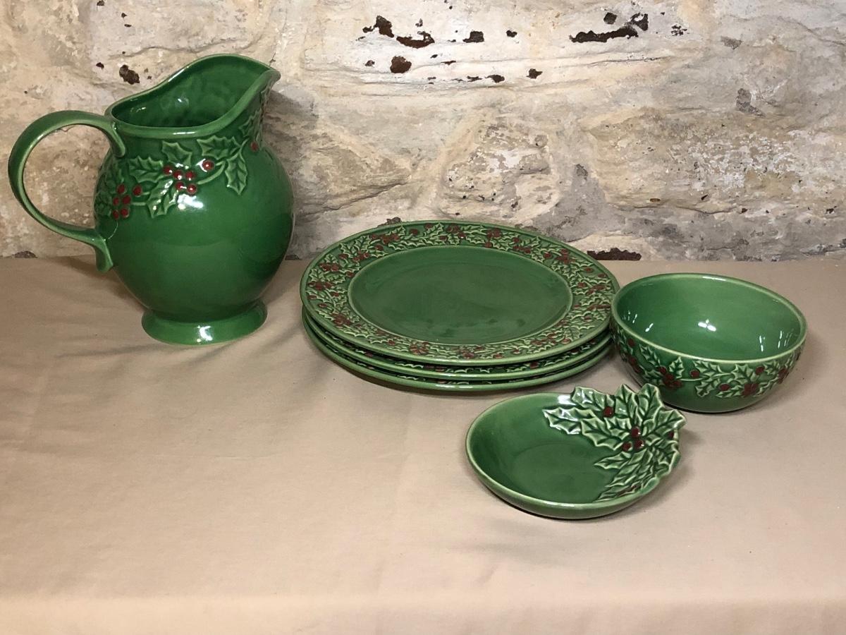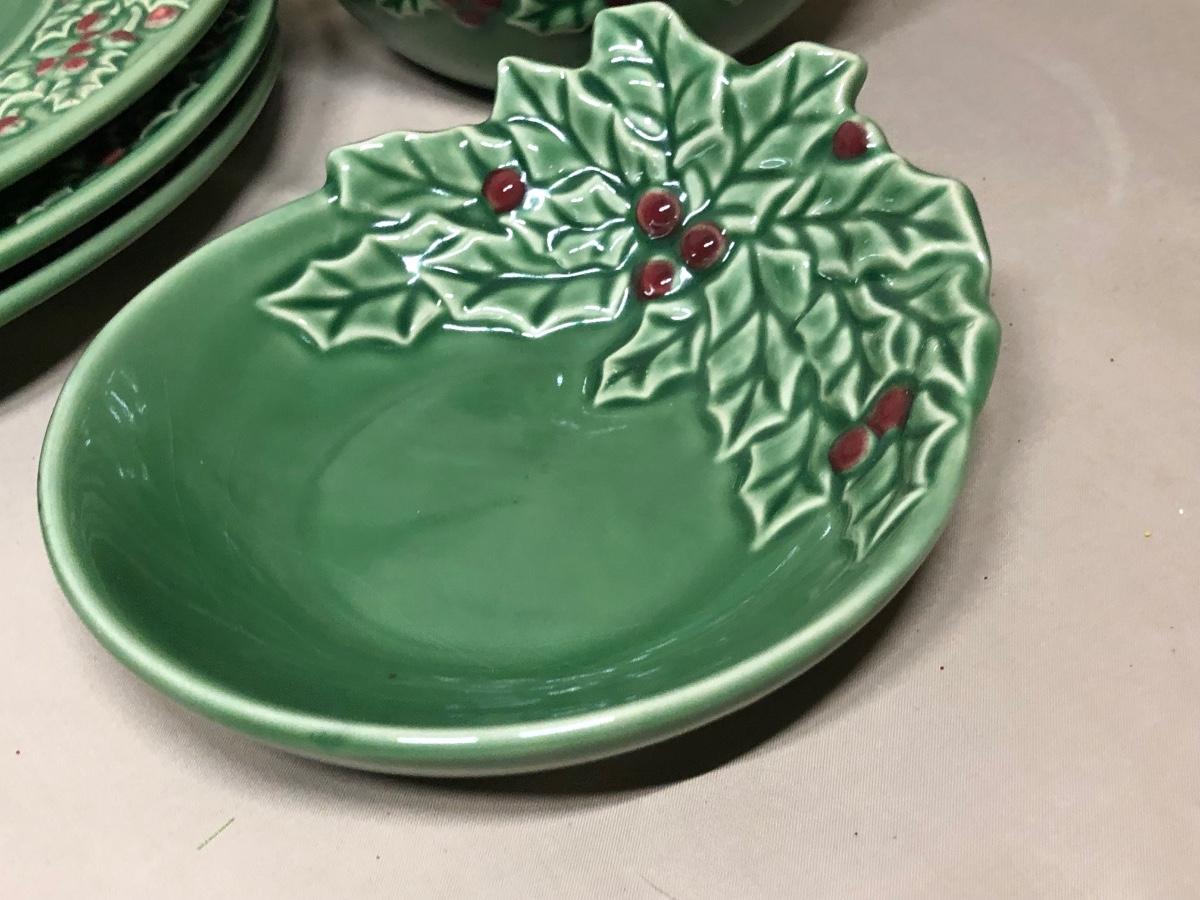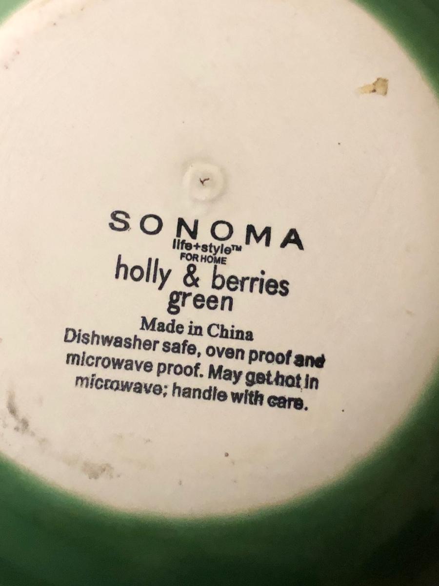 LOT 6M: Sonoma Holly & Berries Green & ND Exclusive Christmas Dishes