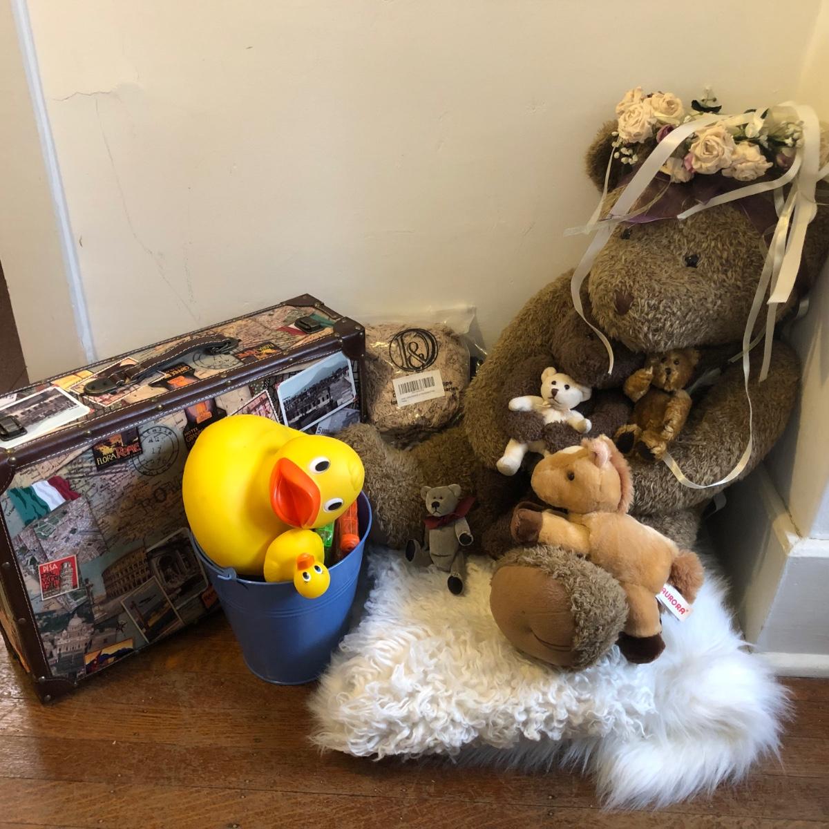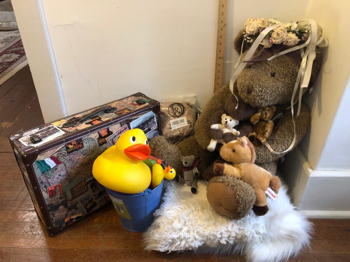 LOT 16M: Photography Props: Suitcase, Stuffed Animals & More