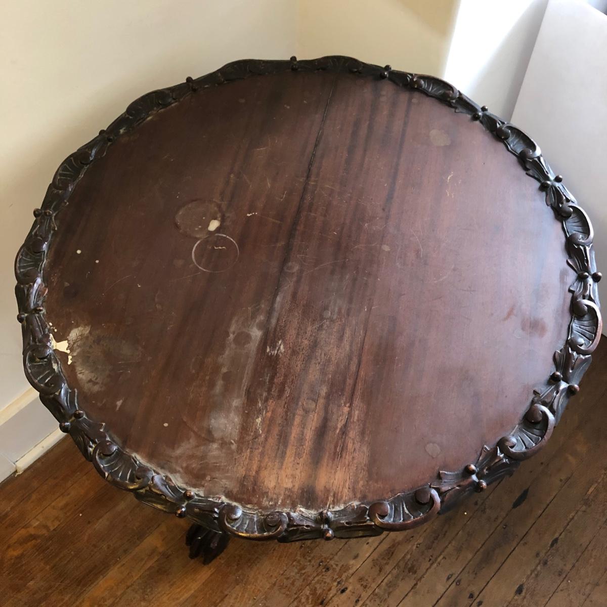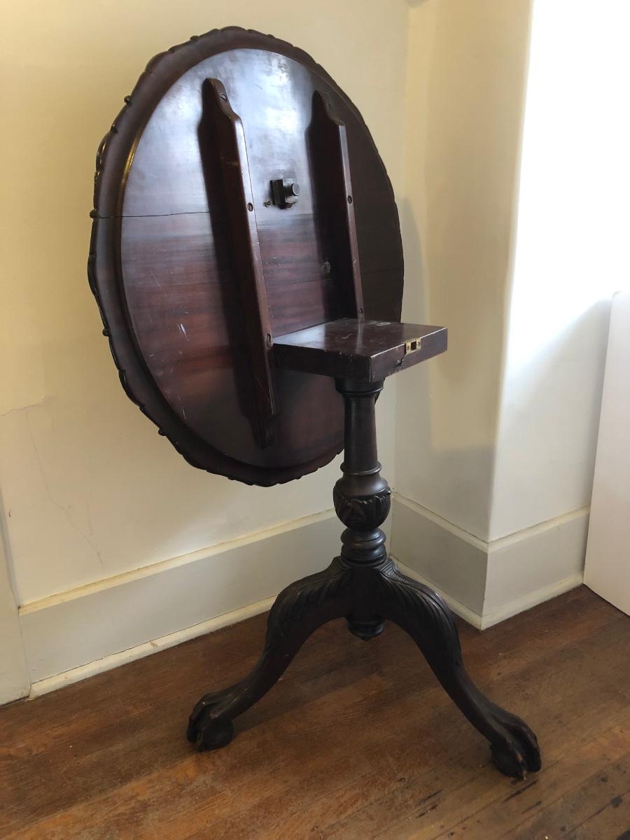 LOT 23M: Carved Wood Tilt Top Claw Foot Table